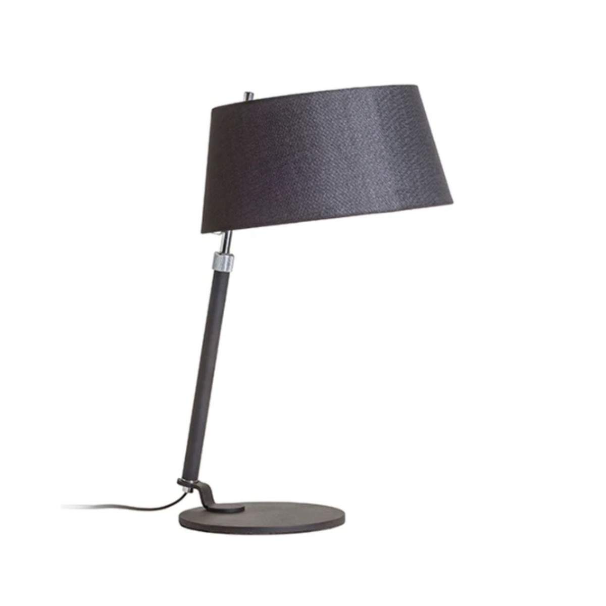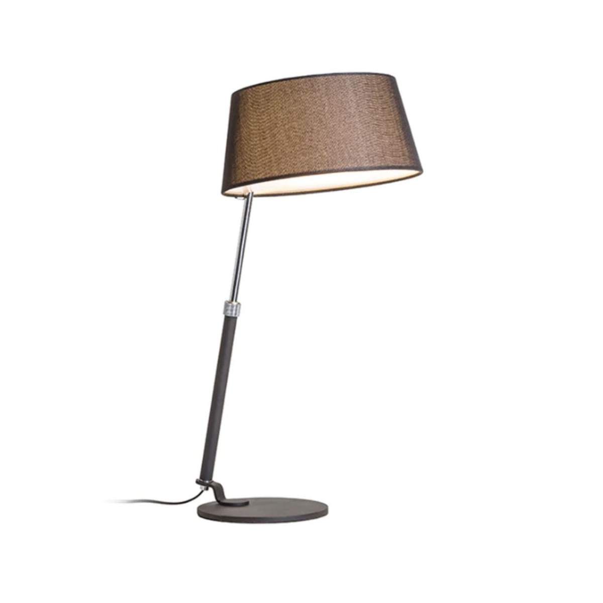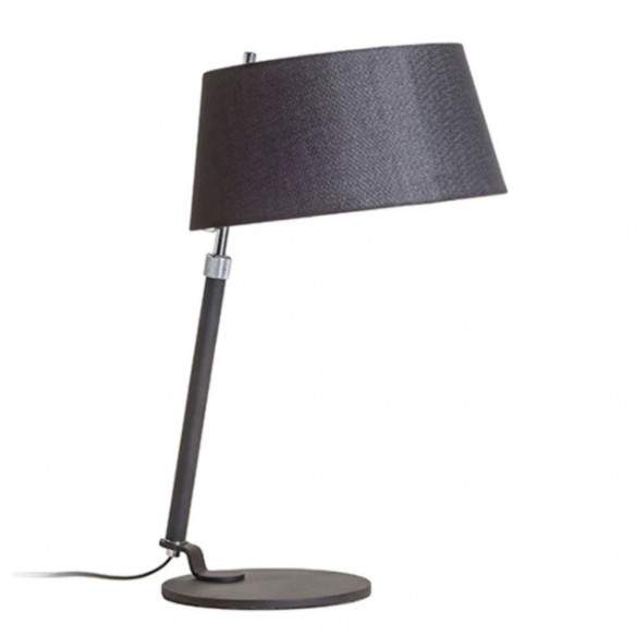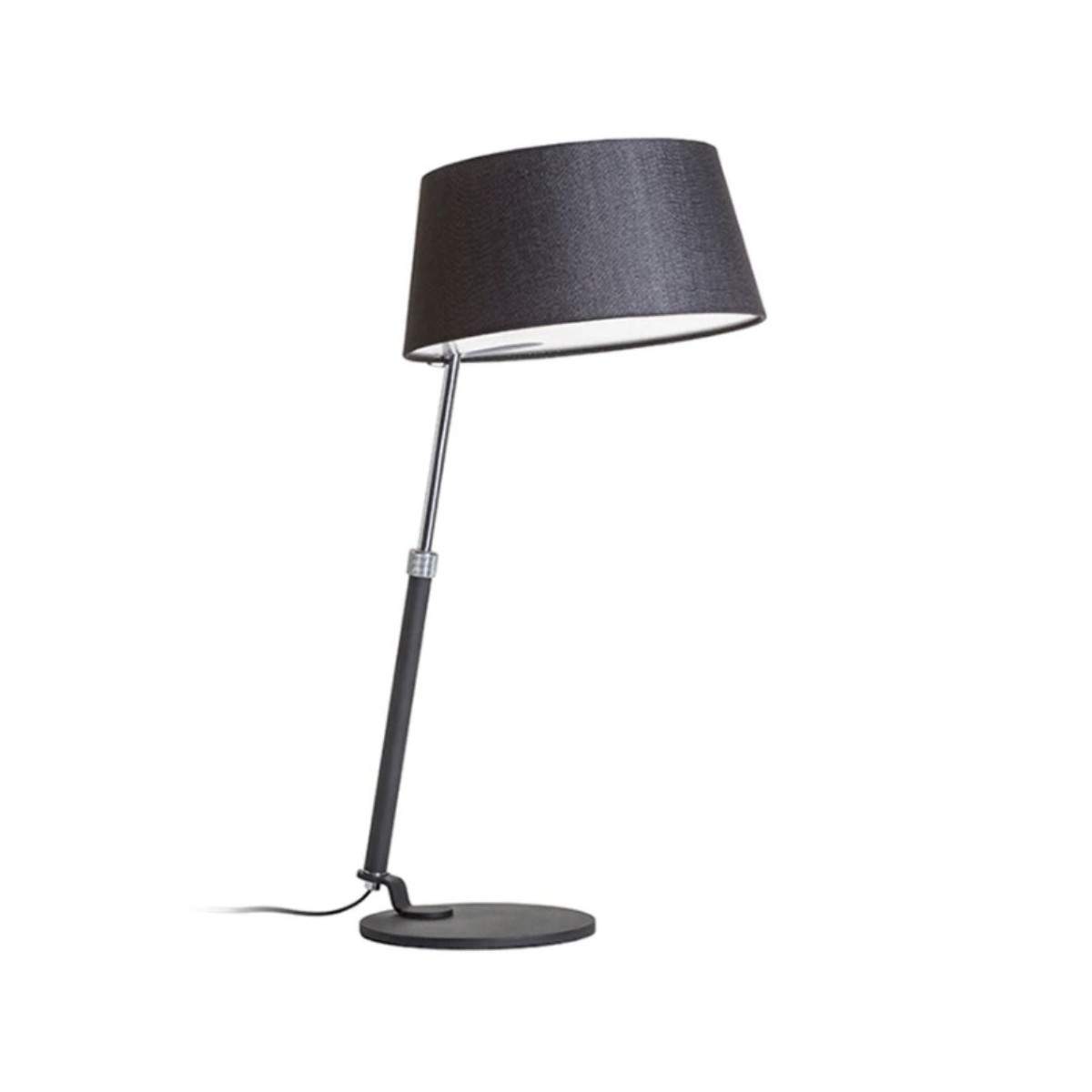 Lampada da tavolo RITZY in colore nero e cromo con paralume in tessuto e con sistema di regolazione telescopica dell‘altezza della lampada.