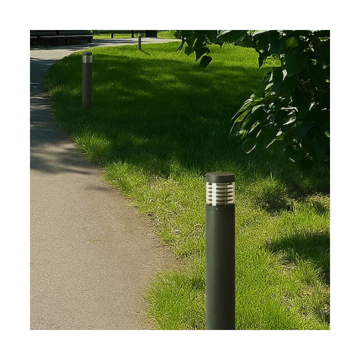 Con un diametro di 12 cm e un’altezza di 65 cm, ABAX si inserisce con discrezione lungo i percorsi o negli spazi verdi, trasformando la luce in un vero elemento d’arredo.