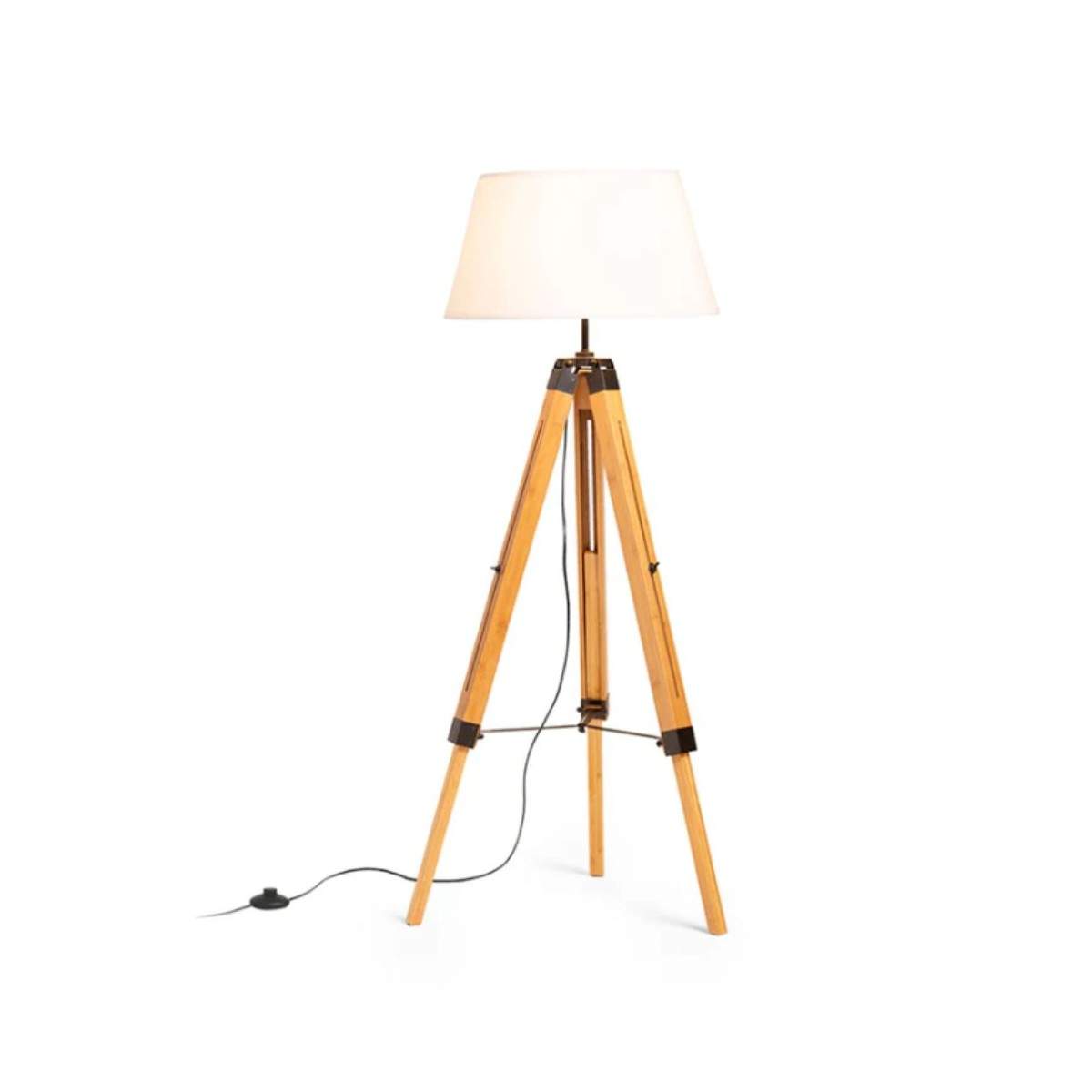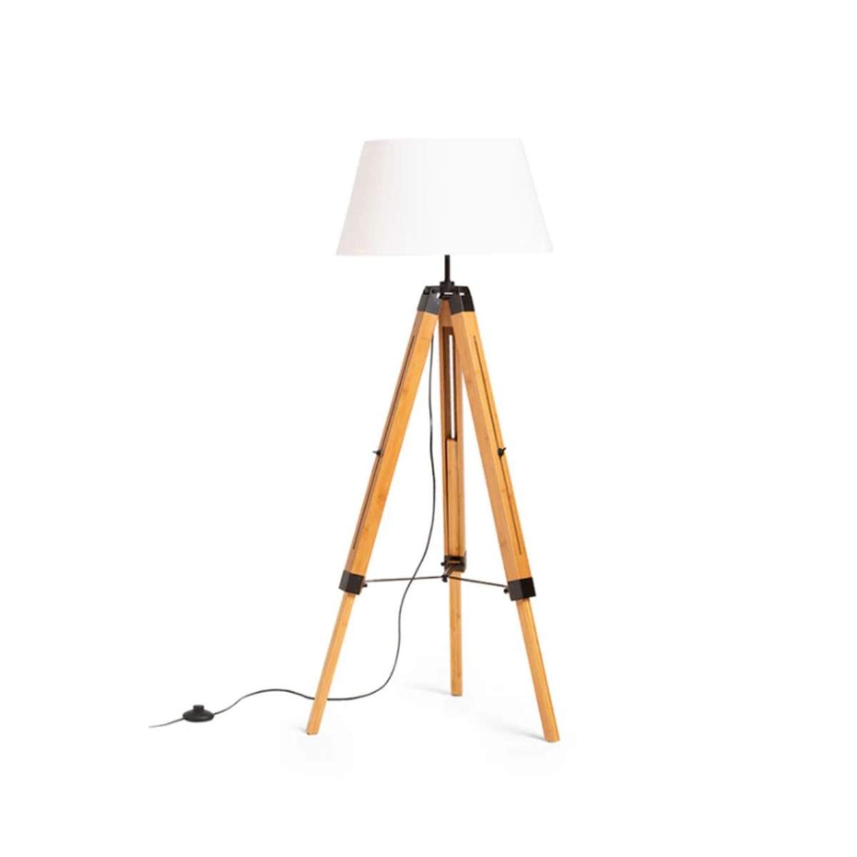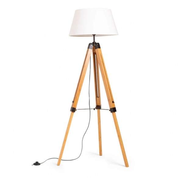 Il paralume in tessuto diffonde una luce calda e accogliente, mentre la base in bambù regolabile in altezza offre flessibilità e praticità, permettendo di adattare la lampada a diversi spazi e necessità.