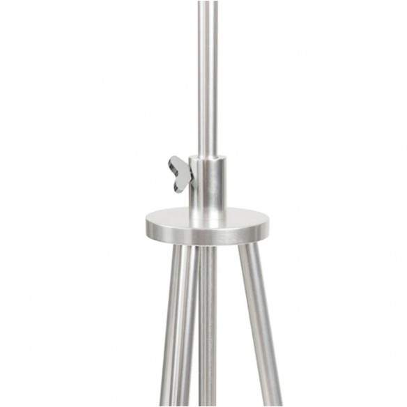 La struttura su treppiede con sistema regolabile in altezza permette di adattare la lampada a diversi ambienti e necessità luminose, mentre il paralume in tessuto diffonde una luce morbida e accogliente.