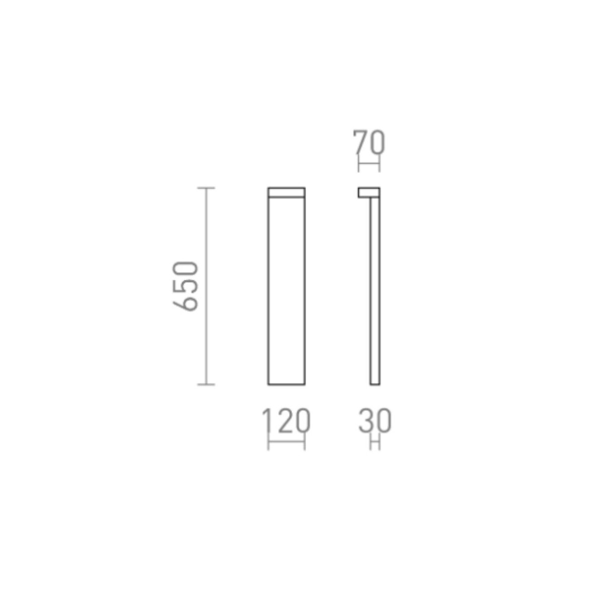 Con un’altezza di 64,5 cm e una lunghezza di 12 cm, GARDIEN si integra facilmente lungo percorsi e aree esterne, diventando un punto luce discreto ma di grande effetto.