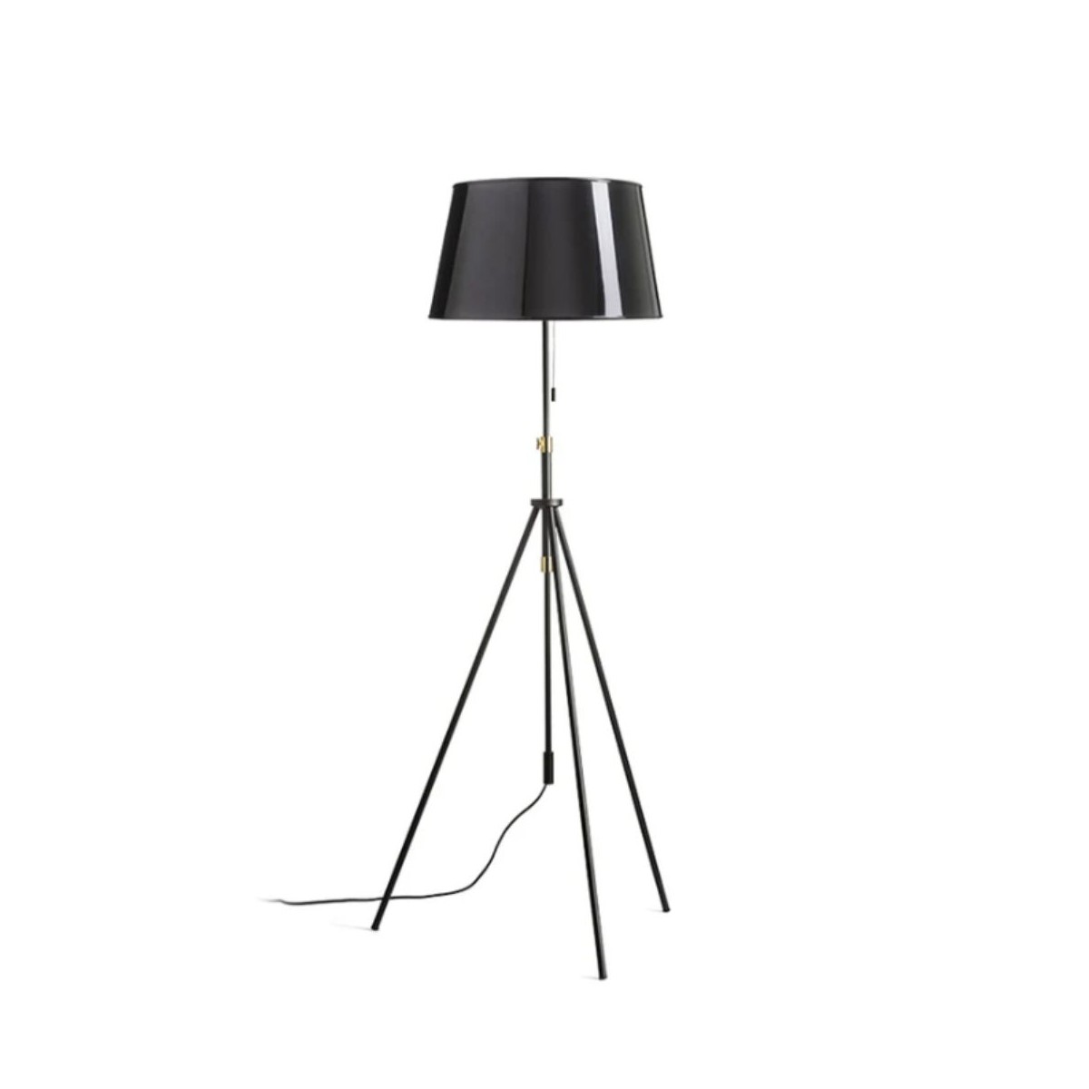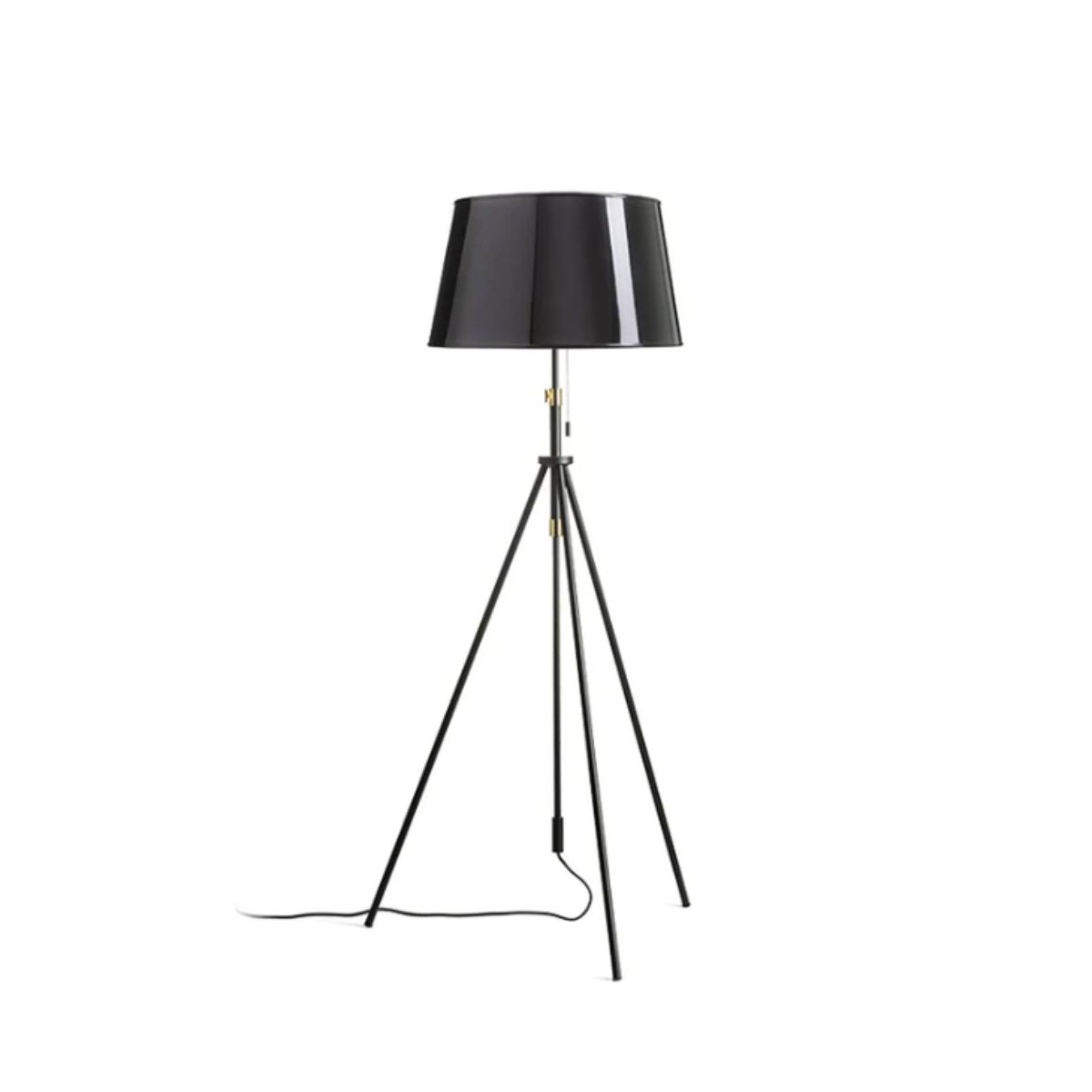 Lampada da terra LUTON con paralume in lamina nera lucida con interno dorato.