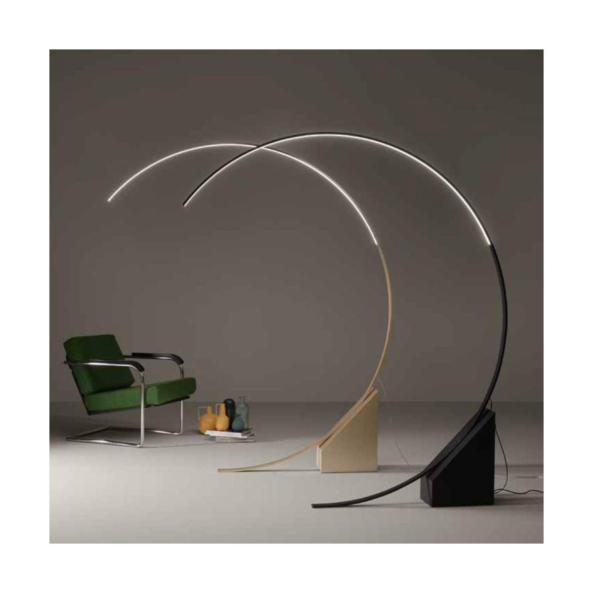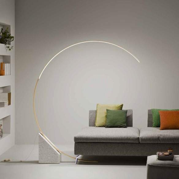 L’impatto estetico è garantito: la struttura ad arco dalle linee pulite crea un gioco di forme elegante e contemporaneo, ideale per illuminare un angolo lettura o valorizzare un tavolo da pranzo, senza bisogno di sospensioni.