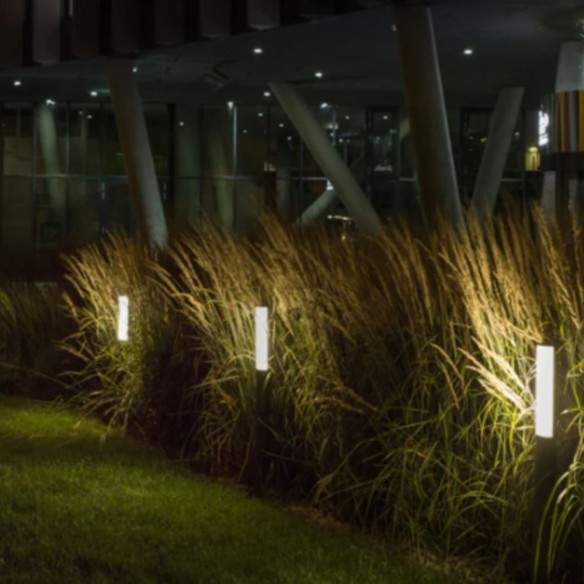 La lampada da terra VADIS LED per esterni unisce design essenziale e funzionalità, perfetta per illuminare vialetti, terrazze o angoli del giardino con una luce calda e uniforme.
