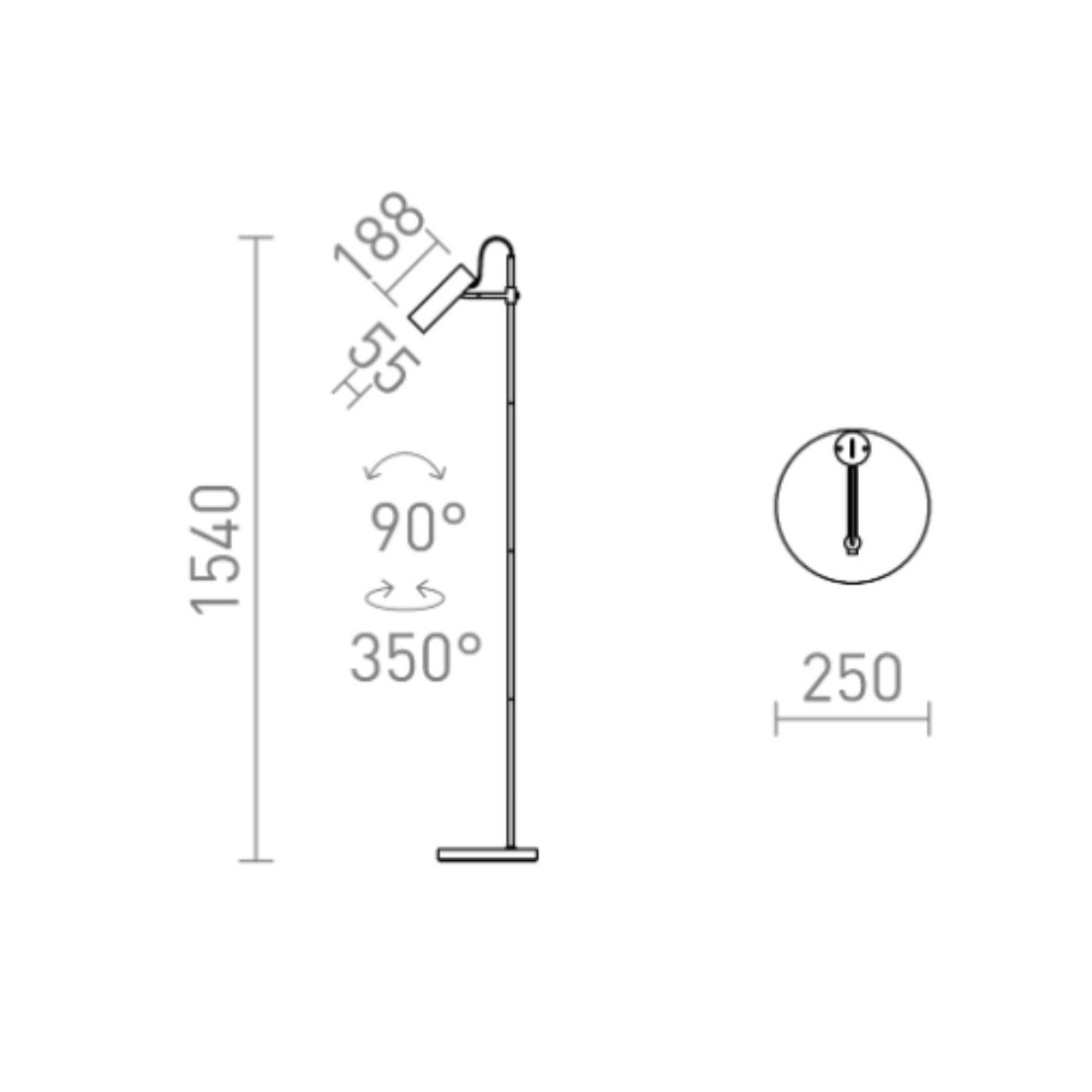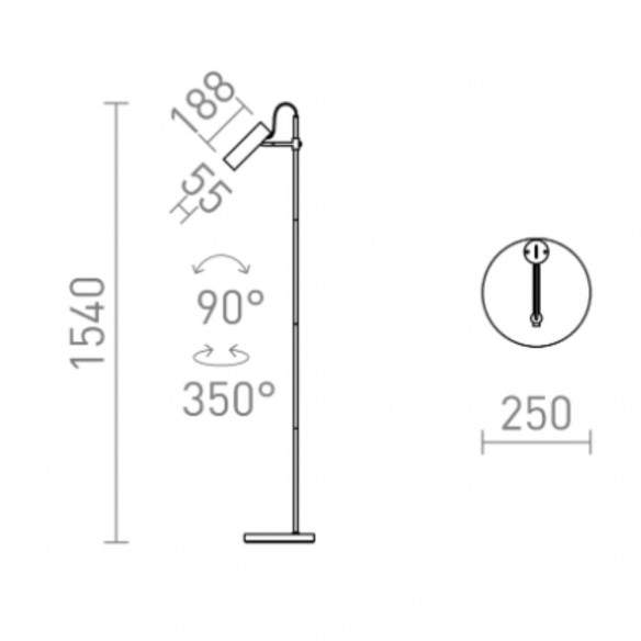 Compatibile con lampadine LED GU10 da 9W, VARIA combina efficienza energetica e illuminazione mirata. Con diametro 25 cm e un’altezza di 154 cm, si distingue per slancio e presenza scenica senza risultare ingombrante.