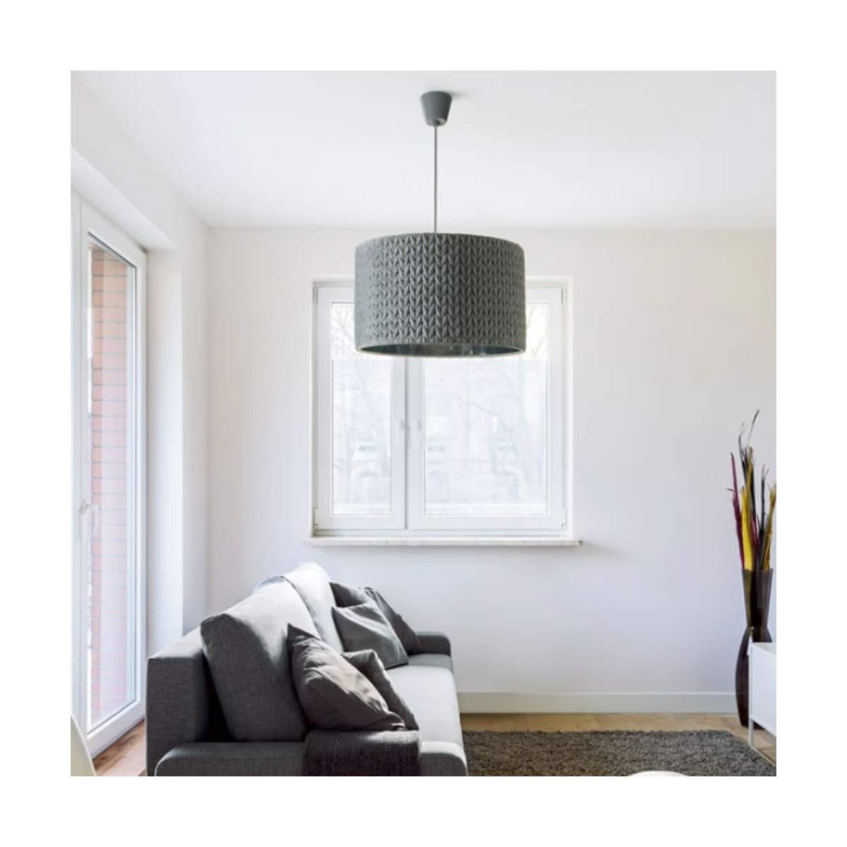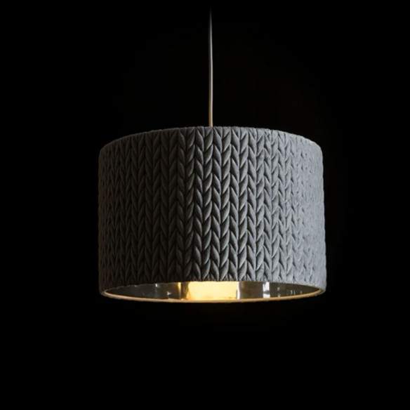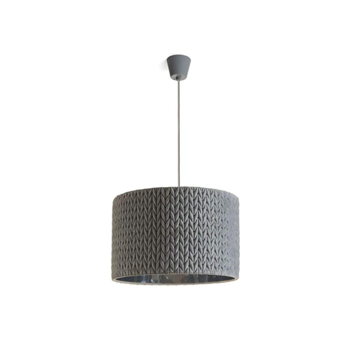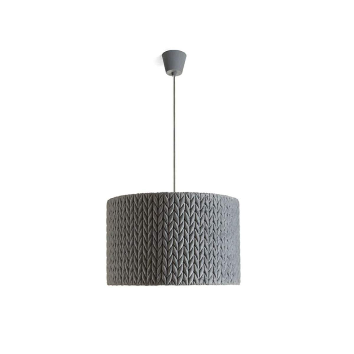 Lampada sospesa AINO con motivo a maglia grigio.