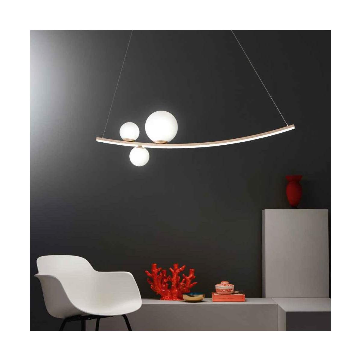 Come un movimento elegante sospeso nell’aria, la lampada ALTALENA gioca con linee leggere e un'estetica contemporanea che arreda con personalità. La struttura sottile e armoniosa cattura lo sguardo, mentre la luce diffusa regala un’atmosfera calda e accogliente.