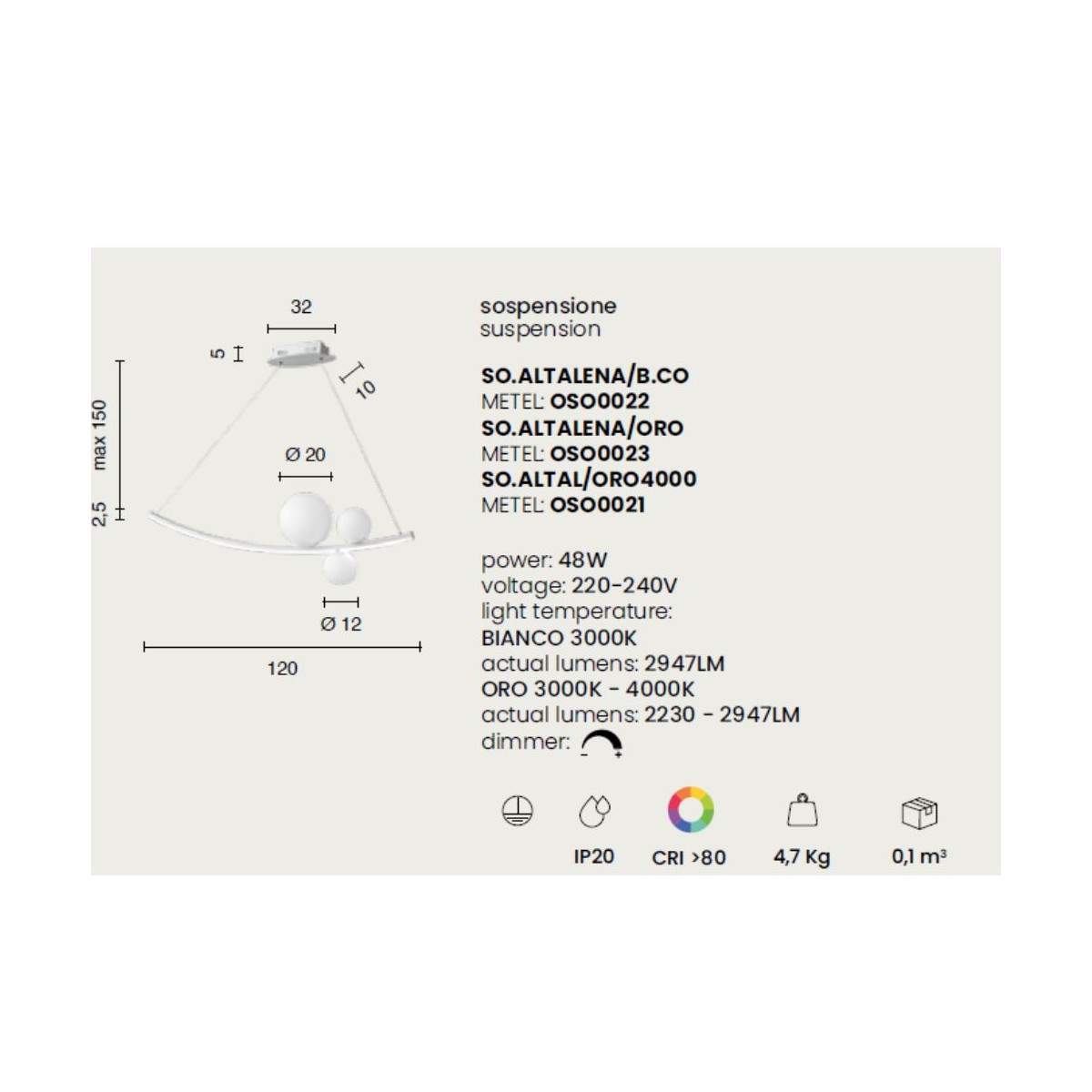 Con un consumo di soli 48W e alimentazione a 220–240V, ALTALENA è la sintesi perfetta tra efficienza, eleganza e tecnologia.