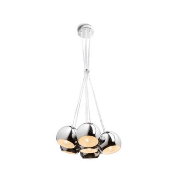 Lampada sospesa ASTROMET costituita da sette sfere cromate connesse ad una base per soffitto con filettatura E27.