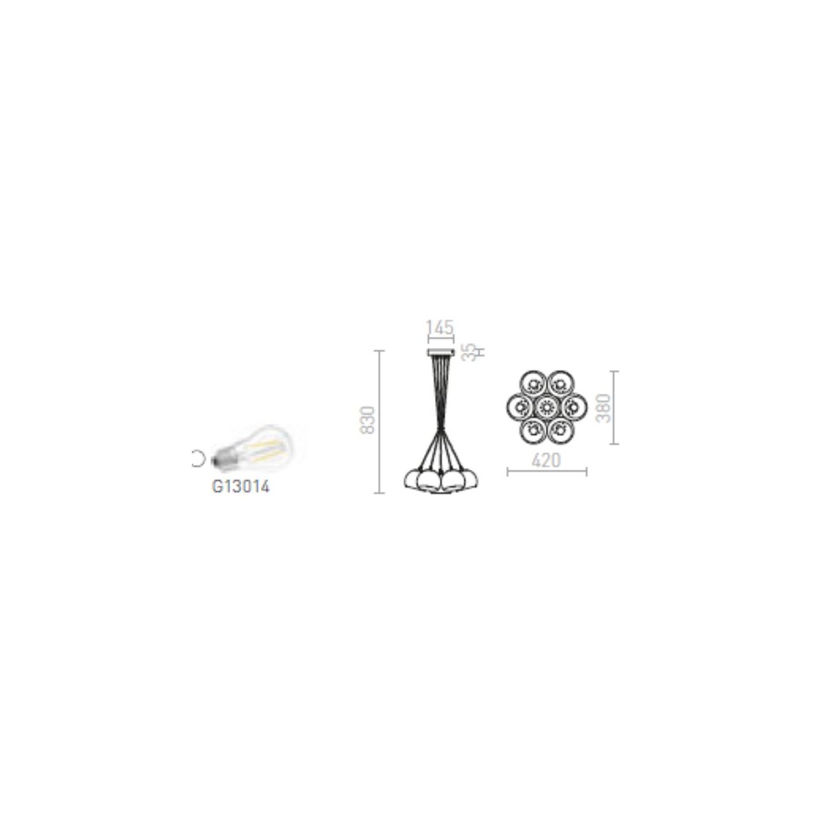 Ideale per ambienti living, ingressi o zone pranzo, utilizza lampadine LED E27 (7x11 W), garantendo efficienza energetica e un’illuminazione brillante senza rinunciare allo stile.