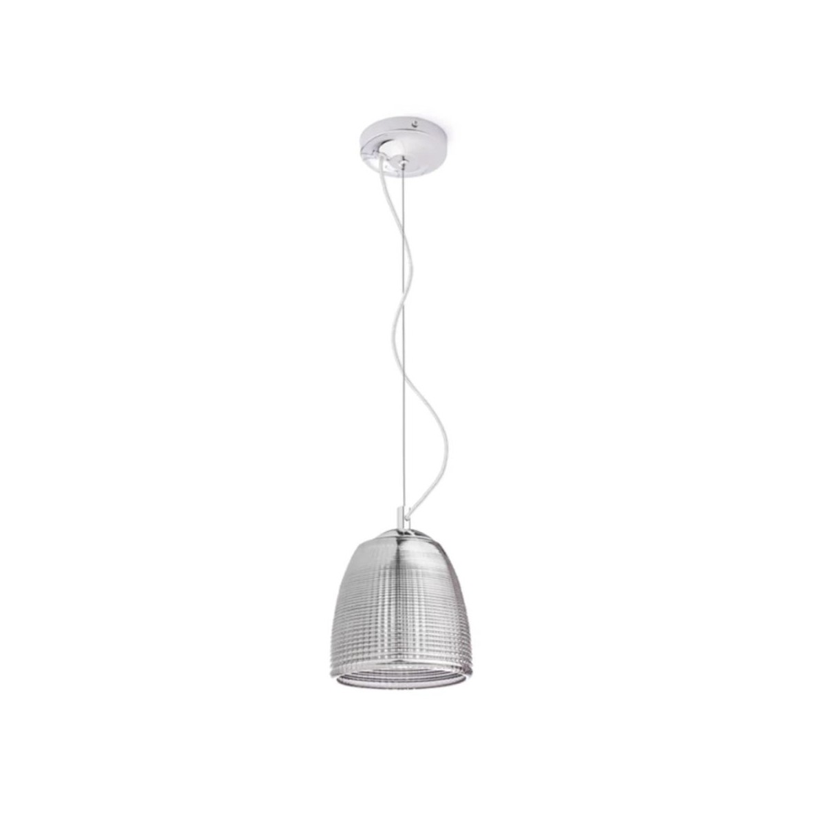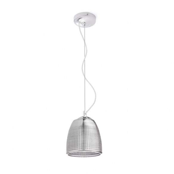 Lampada sospesa AZRIA elegante con vetro strutturato e accessori cromati.