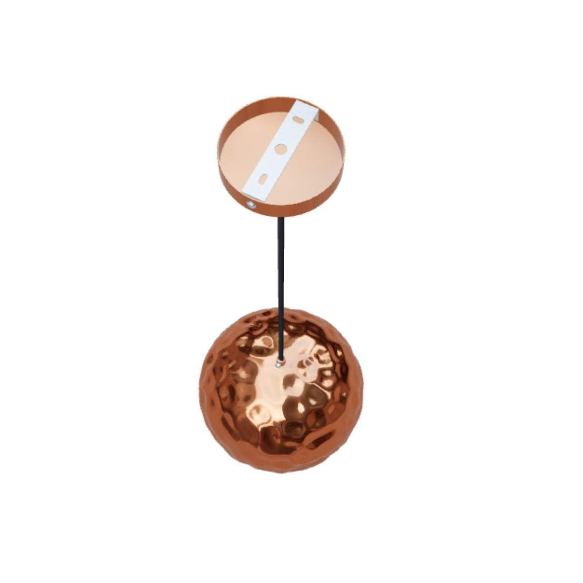 Cavo in PVC nero e copribase per soffitto in color rame fanno parte della fornitura.