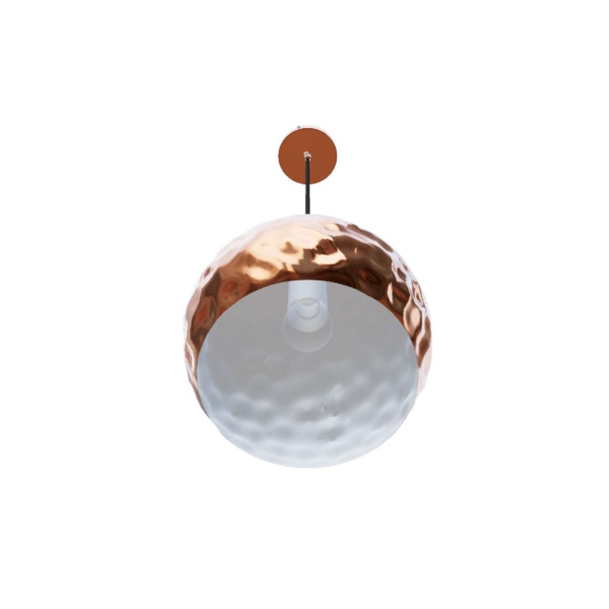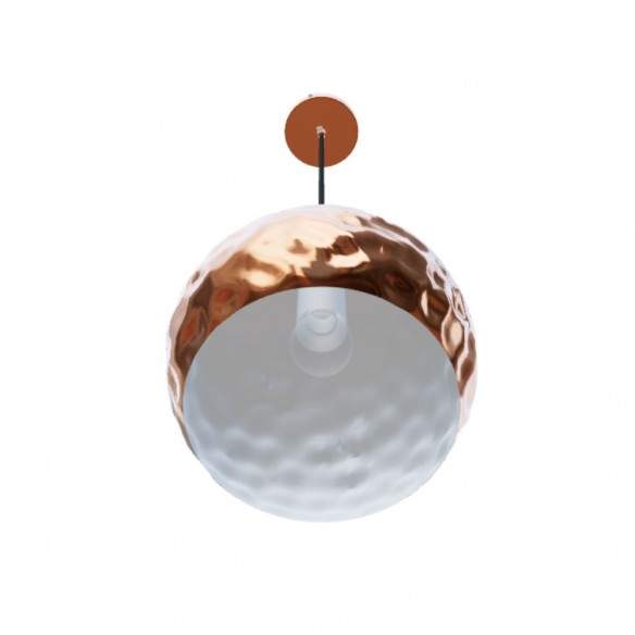 L‘esterno del paralume è di color rame e l‘interno è laccato in bianco.