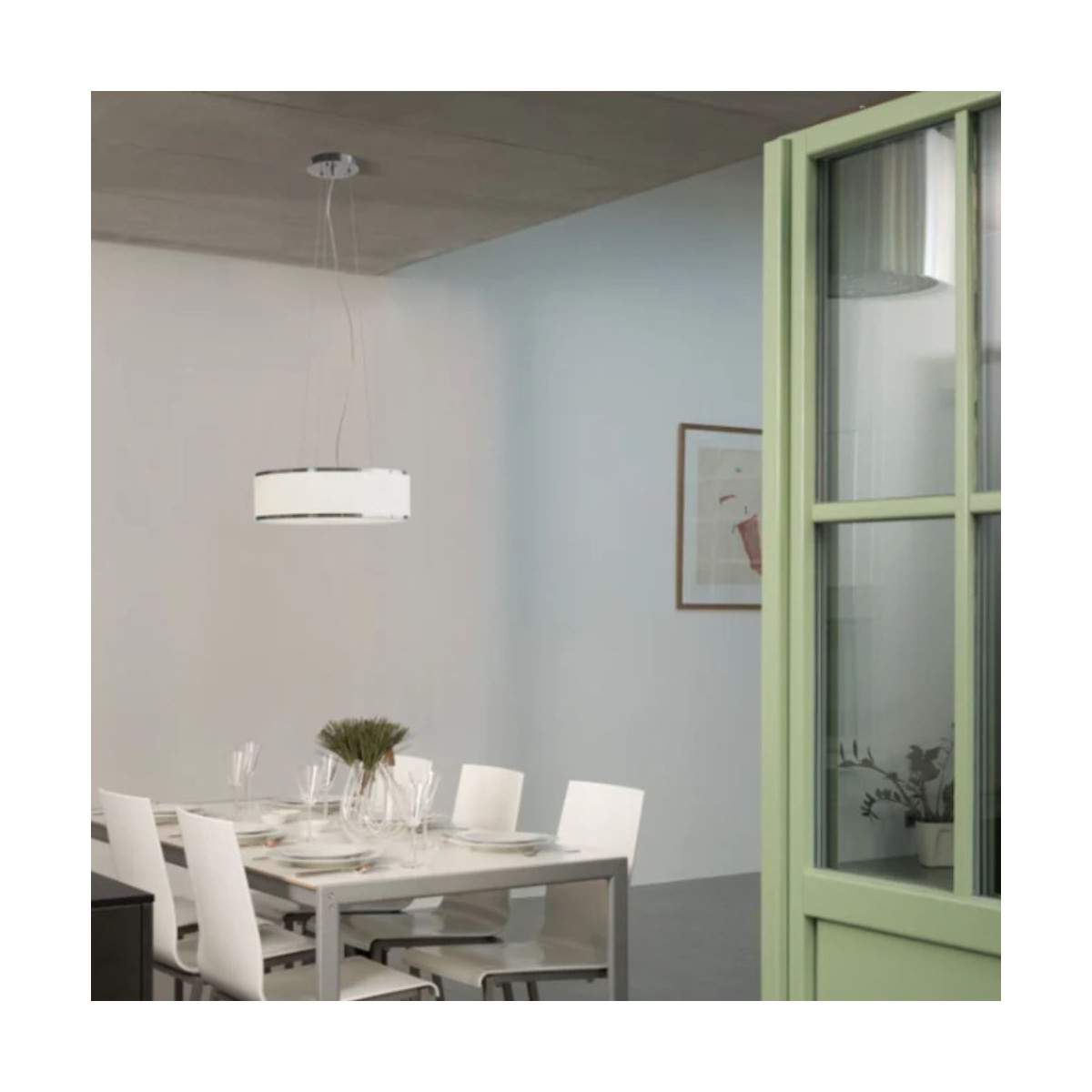 Lampada sospesa CASSABLANCA La parte inferiore in vetro satinato è fissata con vite con tappo cromato.