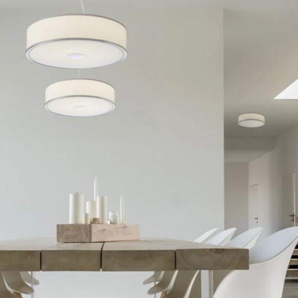 Con i suoi 3100 lumen e una tonalità calda 3000K, illumina l’ambiente con una luce intensa ma confortevole, ideale per la zona living, un’ampia cucina o una sala da pranzo dal carattere sobrio e ricercato. Grazie al diametro importante di 40 cm e al profilo sottile da 12 cm, arreda senza invadere lo spazio, mantenendo linee pulite e armoniose.