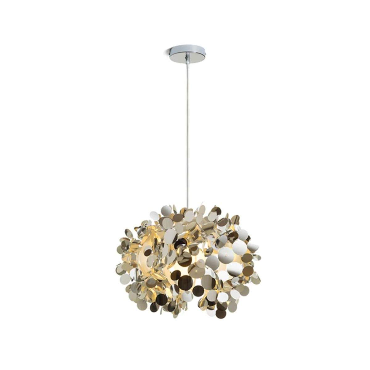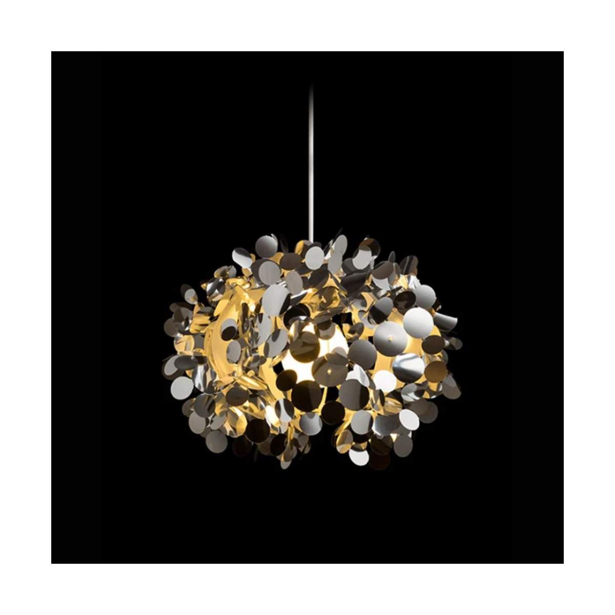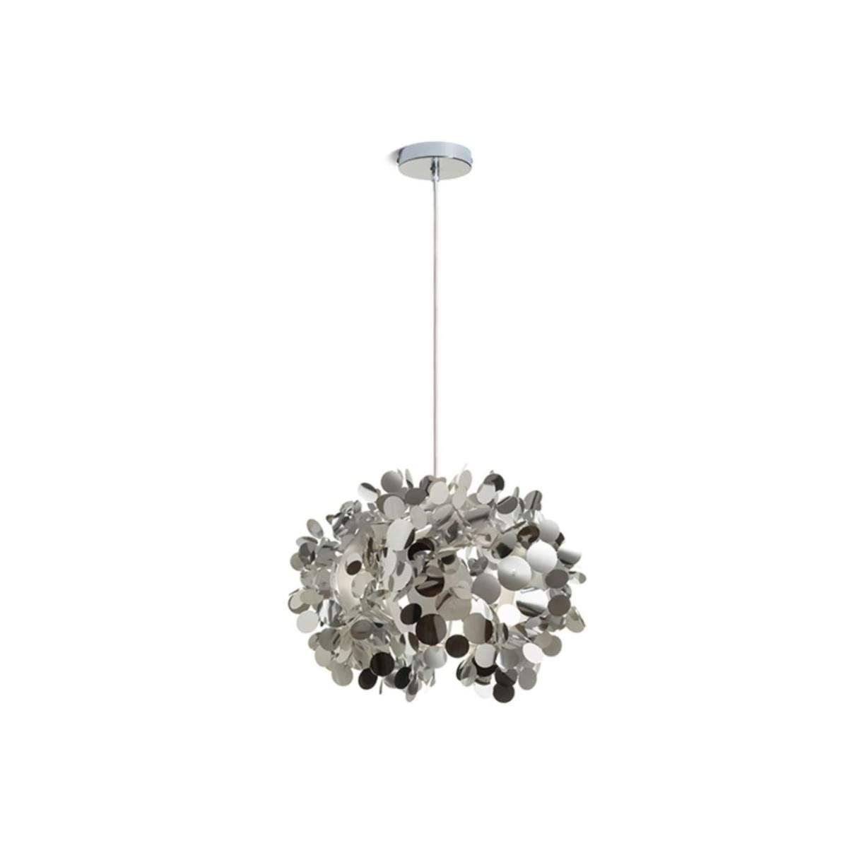 Lampada sospesa CONFETTI con strati di confetti circolari da pellicola cromata. Viene fornita non assemblata, è necessario completarla.