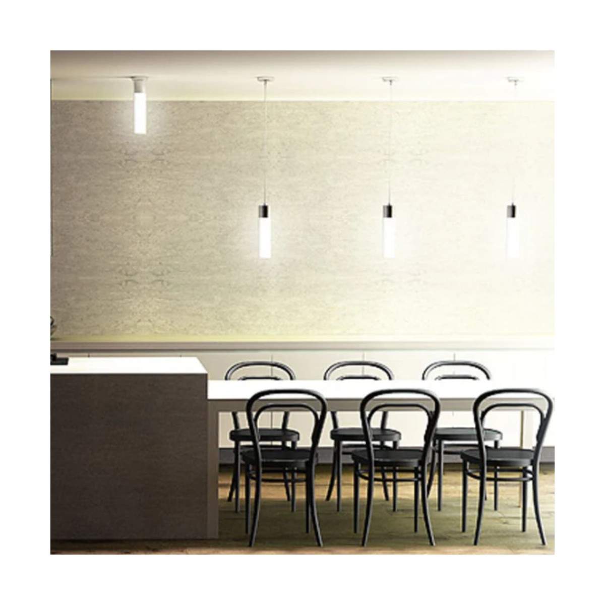 La lampada sospesa EIGHT unisce eleganza minimale e luce morbida, diventando un elemento d’arredo discreto ma capace di valorizzare qualsiasi ambiente. Il paralume in vetro opalino diffonde una luminosità uniforme e avvolgente, perfetta per creare atmosfere rilassate e raffinate in cucina, sala da pranzo o zona living.