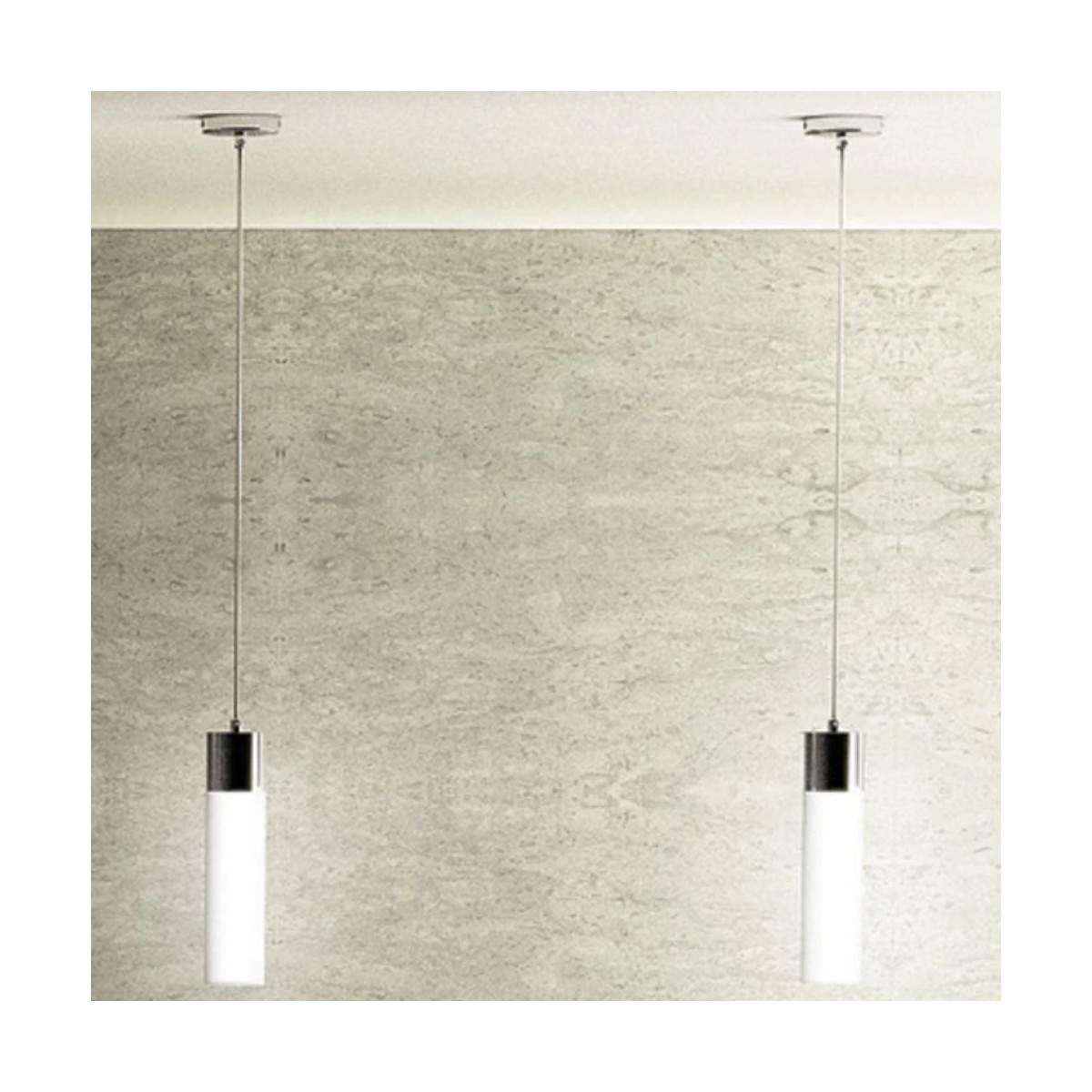 Lampada sospesa EIGHT in vetro opalino e dettagli cromati