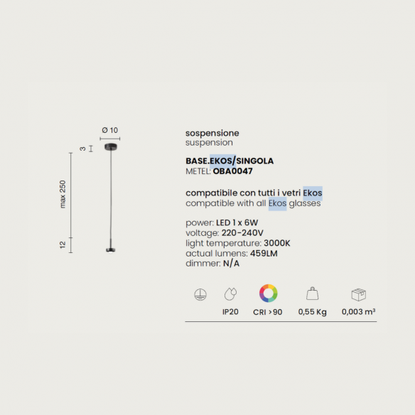 Tutti i vetri EKOS sono compatibili con ogni versione della lampada.