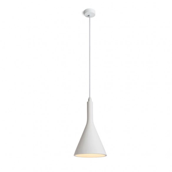Lampada sospesa ELLA in gesso per sorgente luminosa LED con filettatura E27. Base al soffitto in metallo laccato bianco.