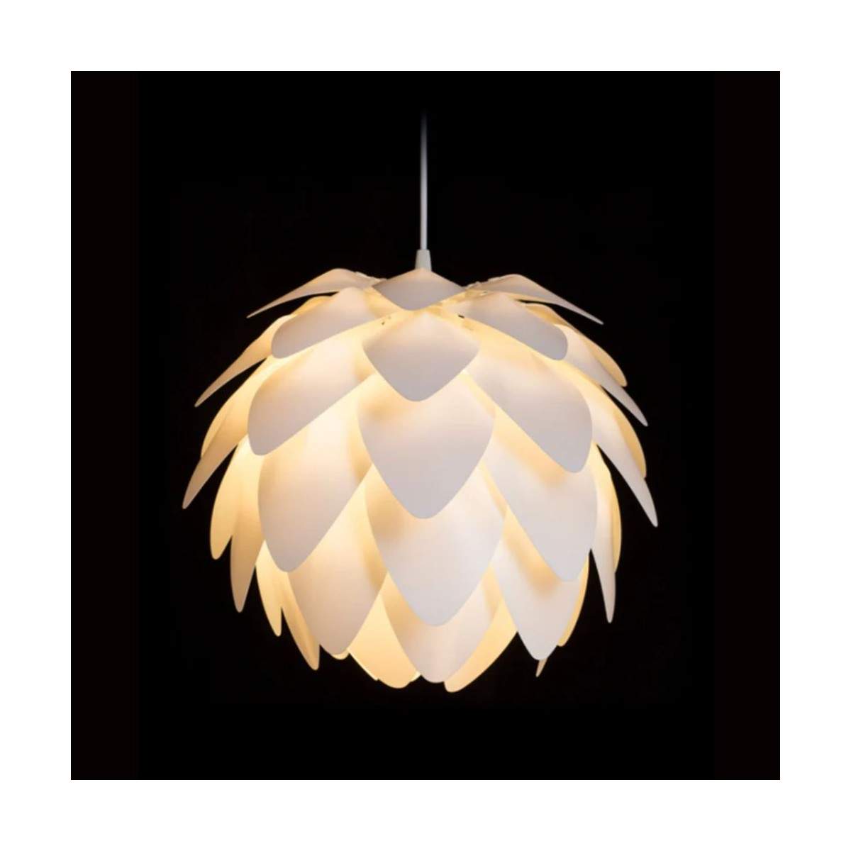 Disponibile in tre eleganti varianti: PVC bianco, pellicola cromata o lamina di rame, si adatta perfettamente a soggiorni, sale da pranzo o zone living che cercano un punto luce originale e distintivo. Compatibile con lampadine LED E27 15W, è regolabile in intensità se abbinata a lampadine dimmerabili.