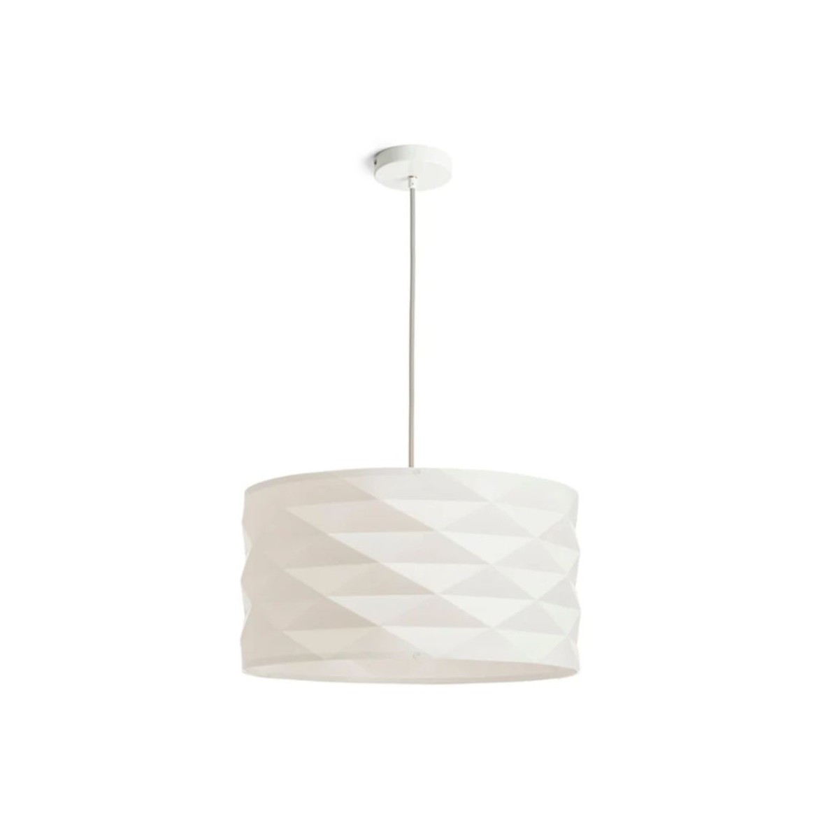 Disponibile nella combinazione PVC bianco/ grigio, si adatta perfettamente a soggiorni, camere o zone living moderne. Compatibile con lampadine LED E27 15W, è regolabile in intensità se abbinata a lampadine dimmerabili, per creare l’atmosfera ideale.