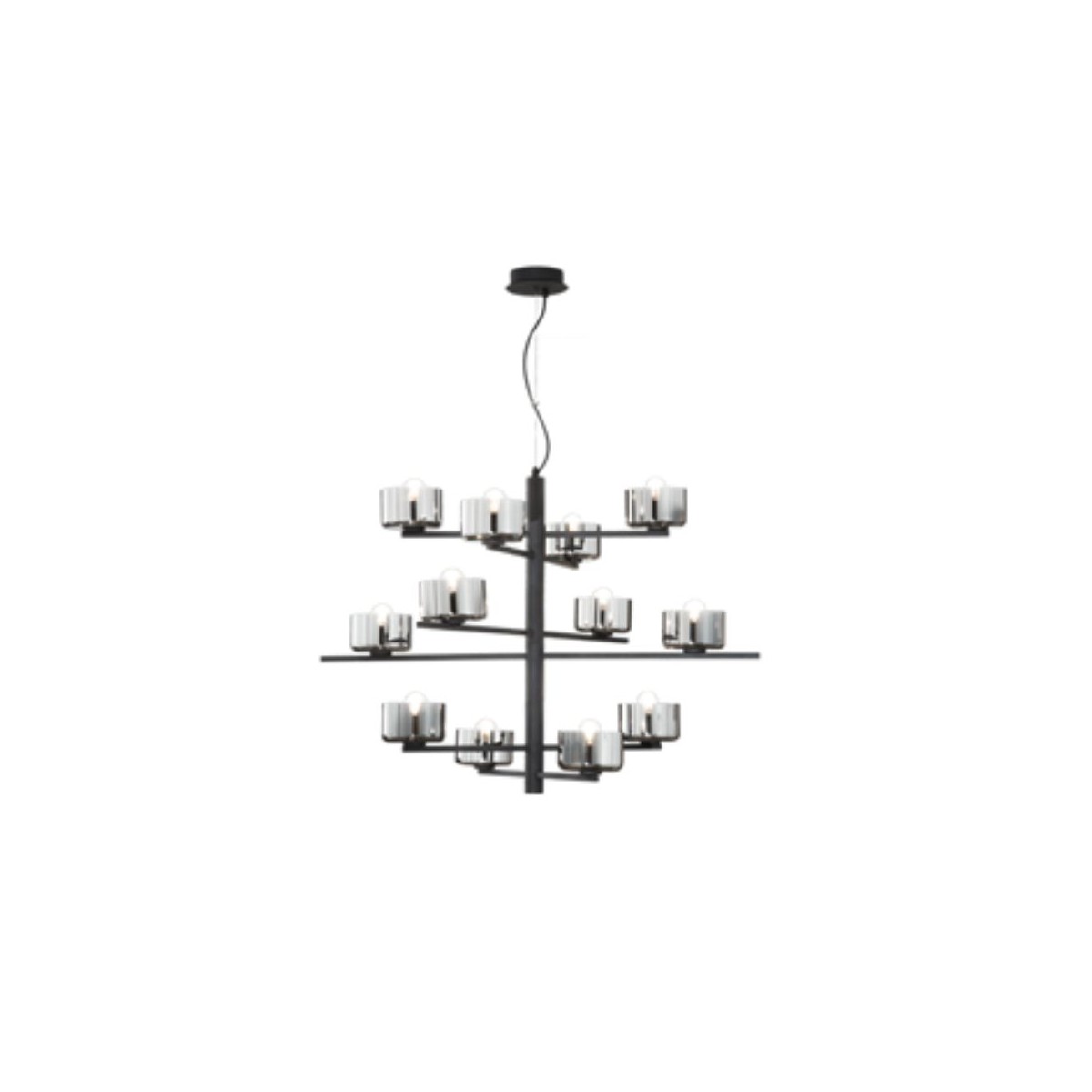 La struttura a croce, essenziale ma scenografica, è sospesa tramite cavi regolabili che permettono di adattare la lampada a qualsiasi altezza, per un’installazione su misura capace di valorizzare living moderni, sale da pranzo importanti o open space di grande respiro.