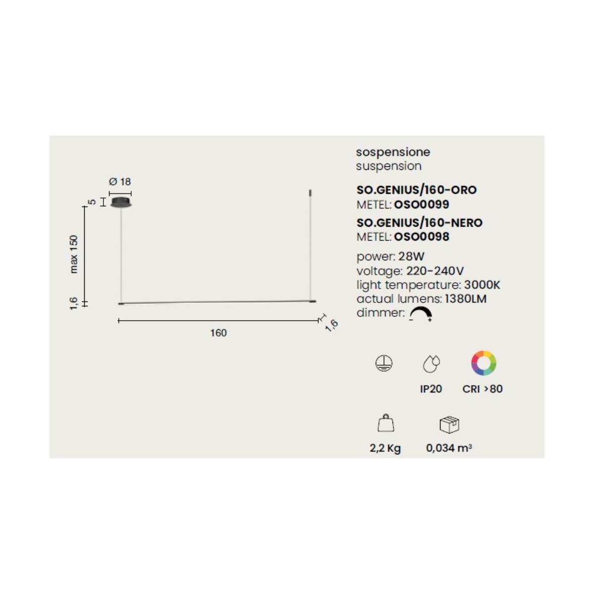 Lampada sospesa GENIUS2 - Ondaluce
