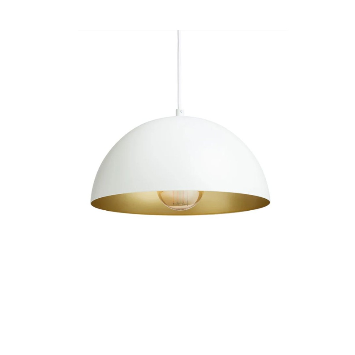 Disponibile in due dimensioni 30 e 40 cm e in combinazioni cromatiche eleganti — bianco/bianco, bianco/oro, nero/bianco, nero/oro — si inserisce con naturalezza in qualunque stile d’arredo, offrendo luminosità uniforme e un'atmosfera rilassante. La sospensione regolabile la rende ideale sopra il tavolo o sul bancone isola, dove sa creare scenografie luminose accoglienti e sofisticate.