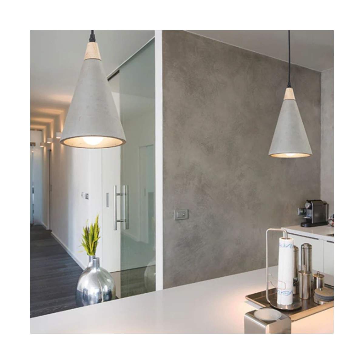 Lampada sospesa HEIDI conico in calcestruzzo, con calotta in legno, adatto per filettatura E27.