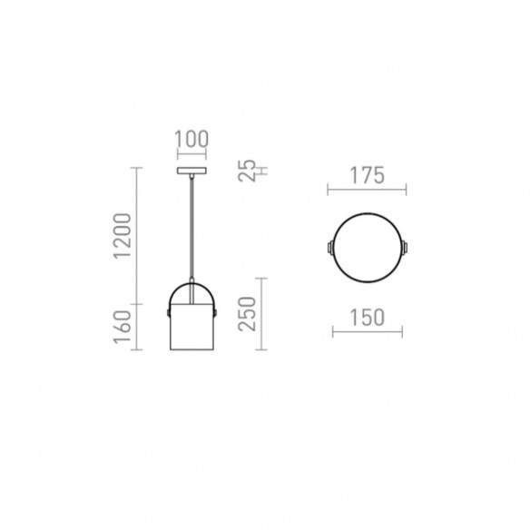 Lampada sospesa JULIETTA con vetro cilindrico opalino.