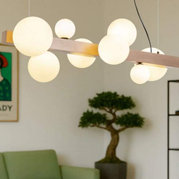 La lampada KASSANDRA è un raffinato equilibrio tra design moderno e fascino decorativo. I suoi otto paralumi in vetro opalino, proposti in tre diverse dimensioni, creano un effetto visivo dinamico e armonioso, perfetto per impreziosire ogni ambiente.