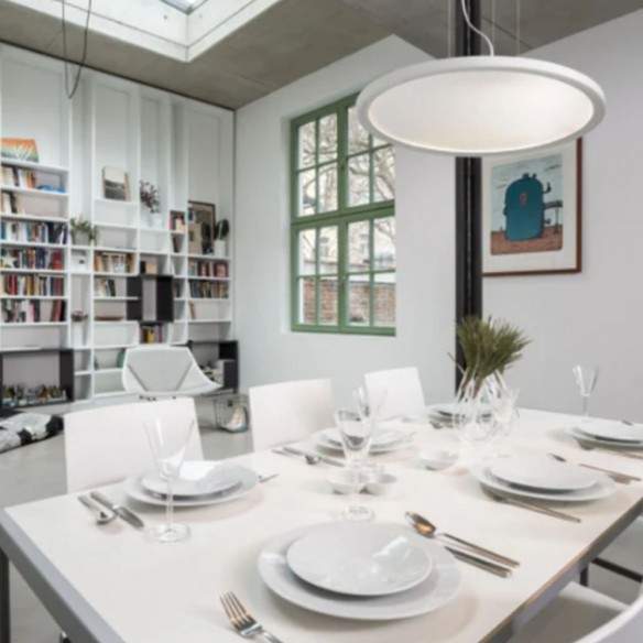 Con il suo diametro importante da 50 cm e uno spessore di soli 3 cm, arreda con una presenza scultorea ma mai eccessiva. Perfetta sopra il tavolo da pranzo, in soggiorno, in un ingresso contemporaneo o sopra un’isola cucina, porta equilibrio, luminosità e un elegante senso di calma agli ambienti più curati.