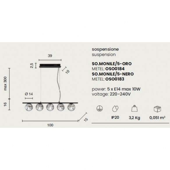 I cavi regolabili (fino a 300 cm) permettono di personalizzare l’installazione in altezza, valorizzando ogni ambiente con giochi di volumi e prospettive. Dotata di attacco E14 (lampadine non incluse, max 10W), funziona con tensione 220-240V, offrendo una luce calda e accogliente che sa trasformare la casa in un luogo ancora più speciale.
