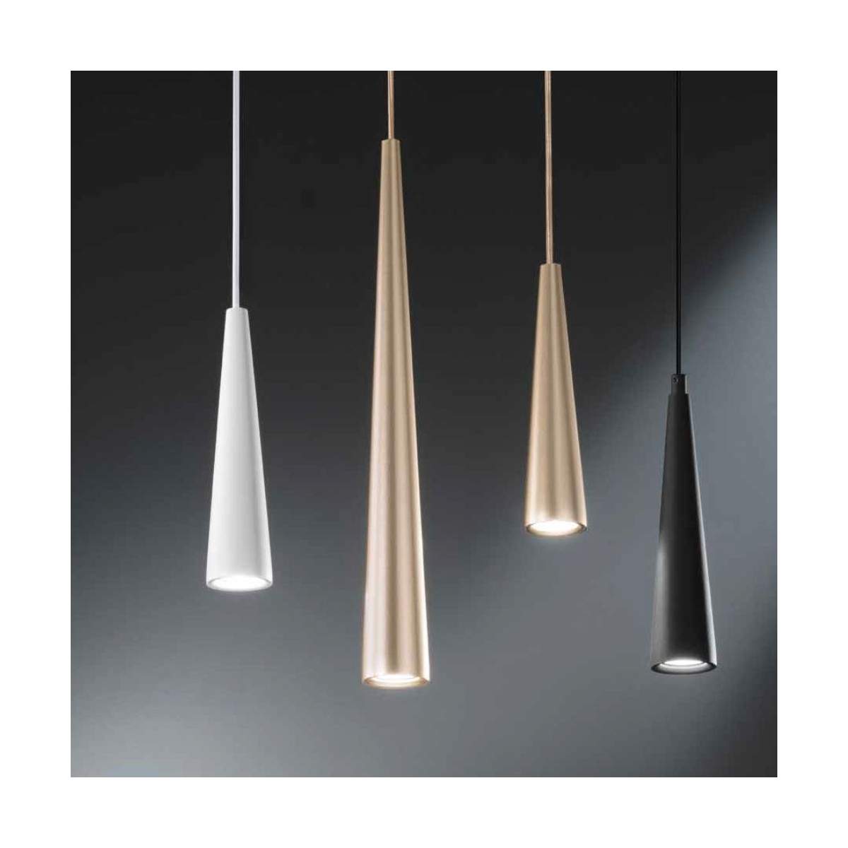 Le sue linee sottili ed essenziali la rendono versatile: può essere utilizzata da sola per un’illuminazione d’accento su piani di lavoro, penisole o comodini, oppure combinata in gruppi grazie alla compatibilità con basi da soffitto e accessori fermacavo, permettendo di creare soluzioni personalizzate e scenografiche.