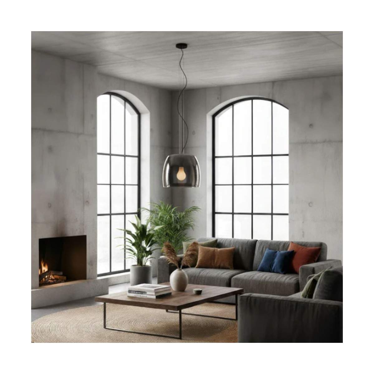 Disponibile in due eleganti combinazioni: vetro trasparente con dettagli neri o vetro fumè con dettagli neri, ORLANDO porta carattere e luce calda in ogni ambiente.