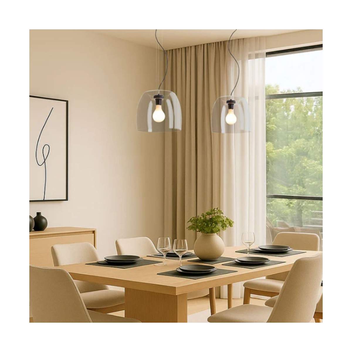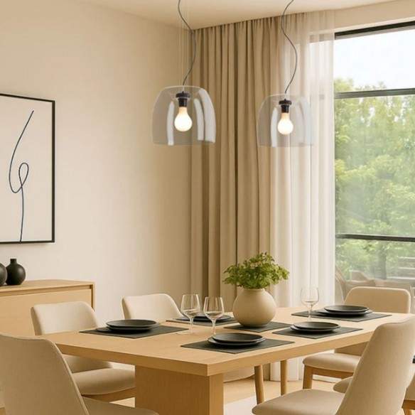La lampada sospesa ORLANDO unisce stile contemporaneo e funzionalità, diventando il punto luce ideale per soggiorni, sale da pranzo o cucine moderne. Il paralume in vetro presenta piccole bolle, caratteristiche del processo di fabbricazione che rendono ogni pezzo unico, senza rappresentare difetti.