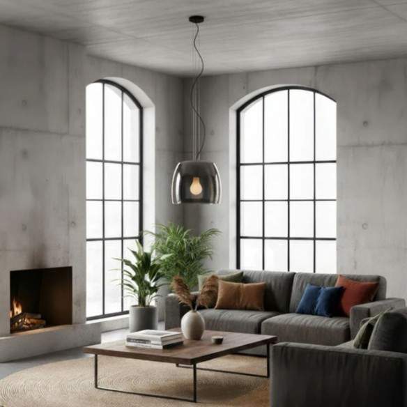 Disponibile in due eleganti combinazioni: vetro trasparente con dettagli neri o vetro fumè con dettagli neri, ORLANDO porta carattere e luce calda in ogni ambiente.