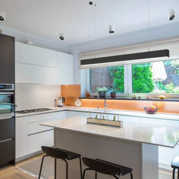 PESANTE è la sospensione perfetta per gli interni contemporanei: un profilo LED lineare, pulito ed essenziale, che illumina con carattere senza appesantire lo spazio. La struttura in alluminio anodizzato o in elegante nero si integra facilmente in cucine moderne, zone living minimal o ambienti professionali, portando una luce potente e uniforme.
