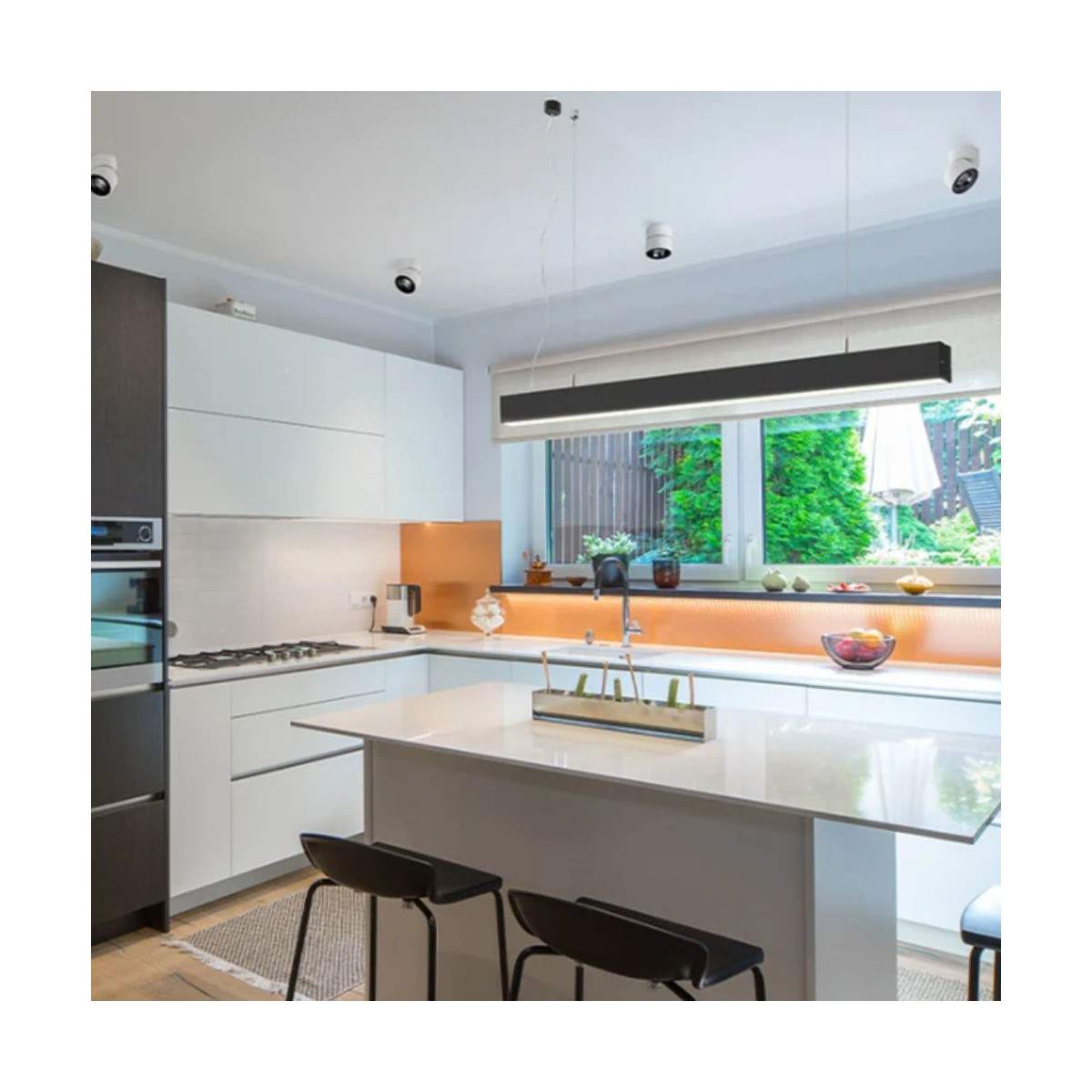 Una sospensione che unisce tecnologia, estetica e funzionalità, pensata per chi vuole una luce moderna, lineare e di grande impatto.