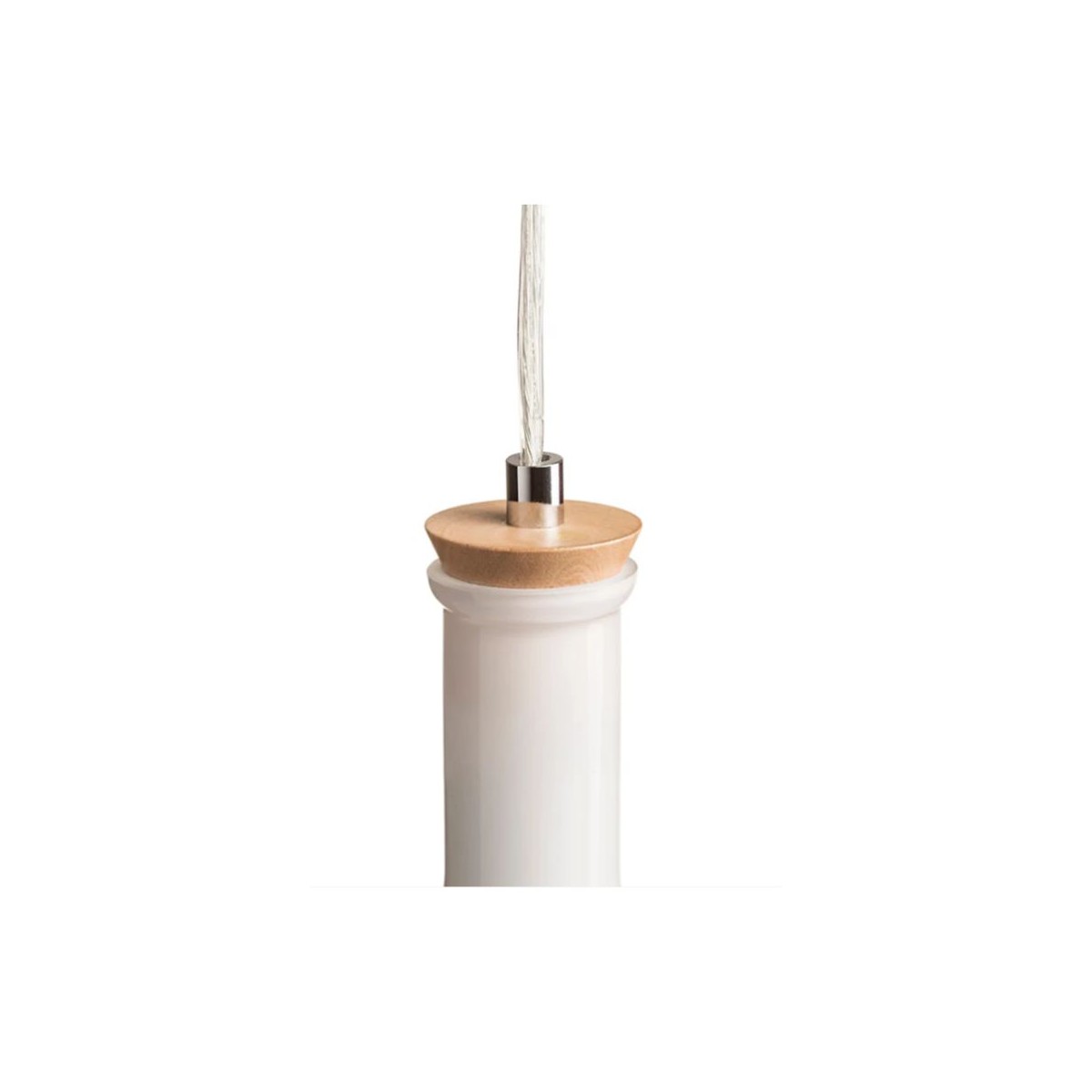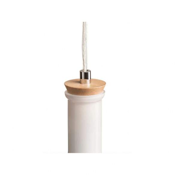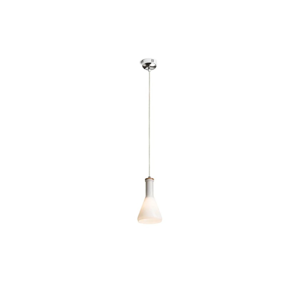 Disponibile nella raffinata combinazione vetro opalino, legno e cromo, è compatibile con lampadine LED E14 6 W a 230 V, ideale per soggiorni, cucine e zone pranzo.
