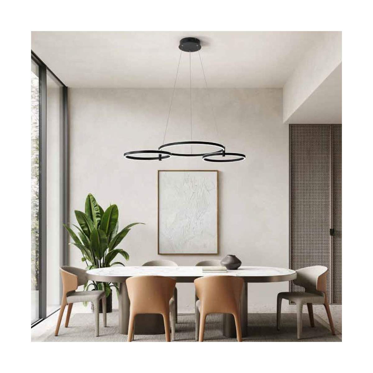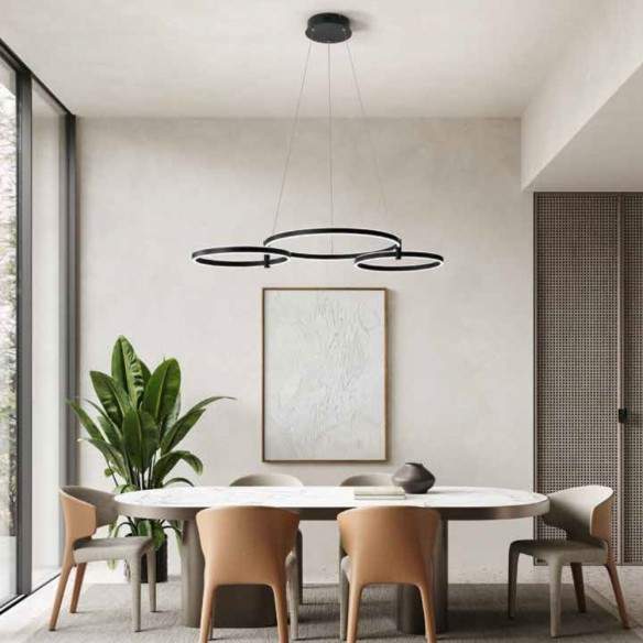 Lampada sospesa SABE in metallo verniciato con elementi circolari regolabili tramite rotazione.