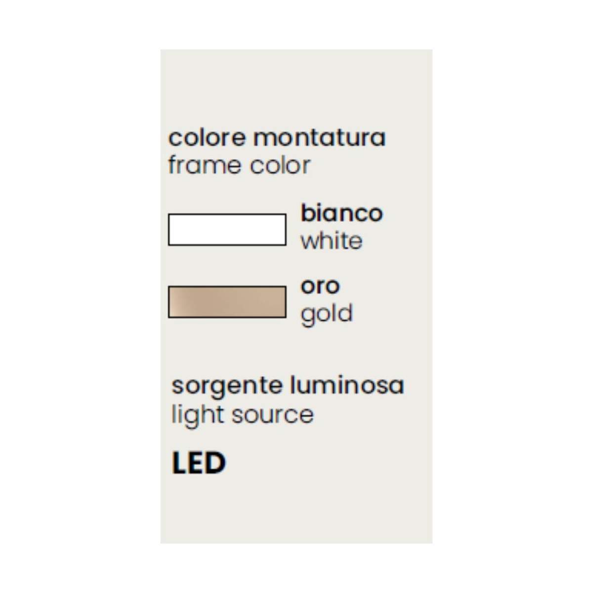 Il modello in finitura bianca è dotato di tecnologia CCT che permette la regolazione della temperatura colore tra 3000K (calda) e 4000K (naturale), mentre la versione oro emette una luce calda fissa a 3000K.