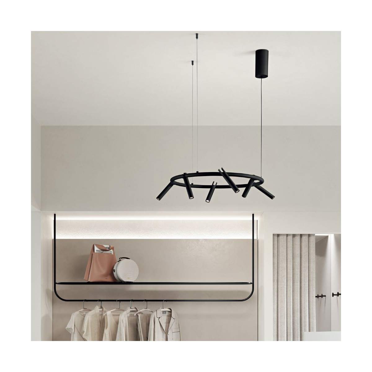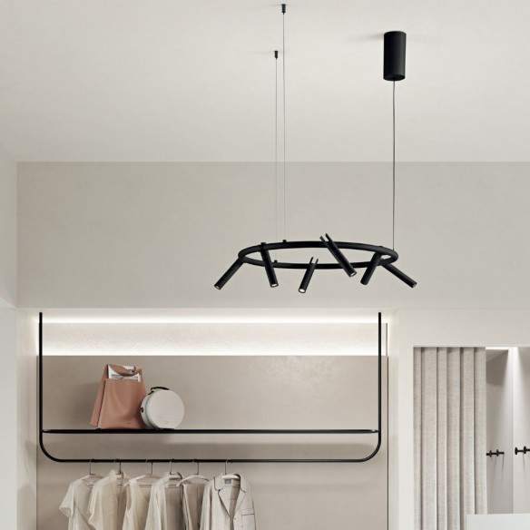 La Lampada sospesa TEDDY è una soluzione luminosa moderna e dinamica, pensata per chi desidera un’illuminazione che arredi davvero lo spazio.