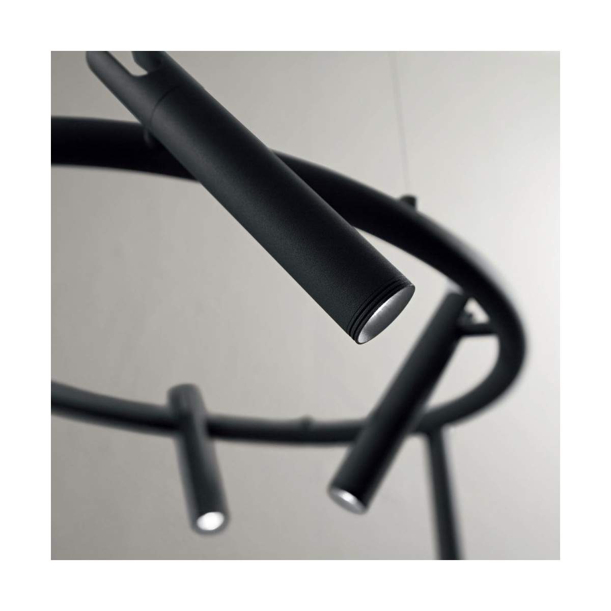 Realizzata in metallo verniciato, si distingue per i suoi elementi luminosi orientabili, che permettono di direzionare la luce e creare scenografie personalizzate in base all’ambiente e alle esigenze.