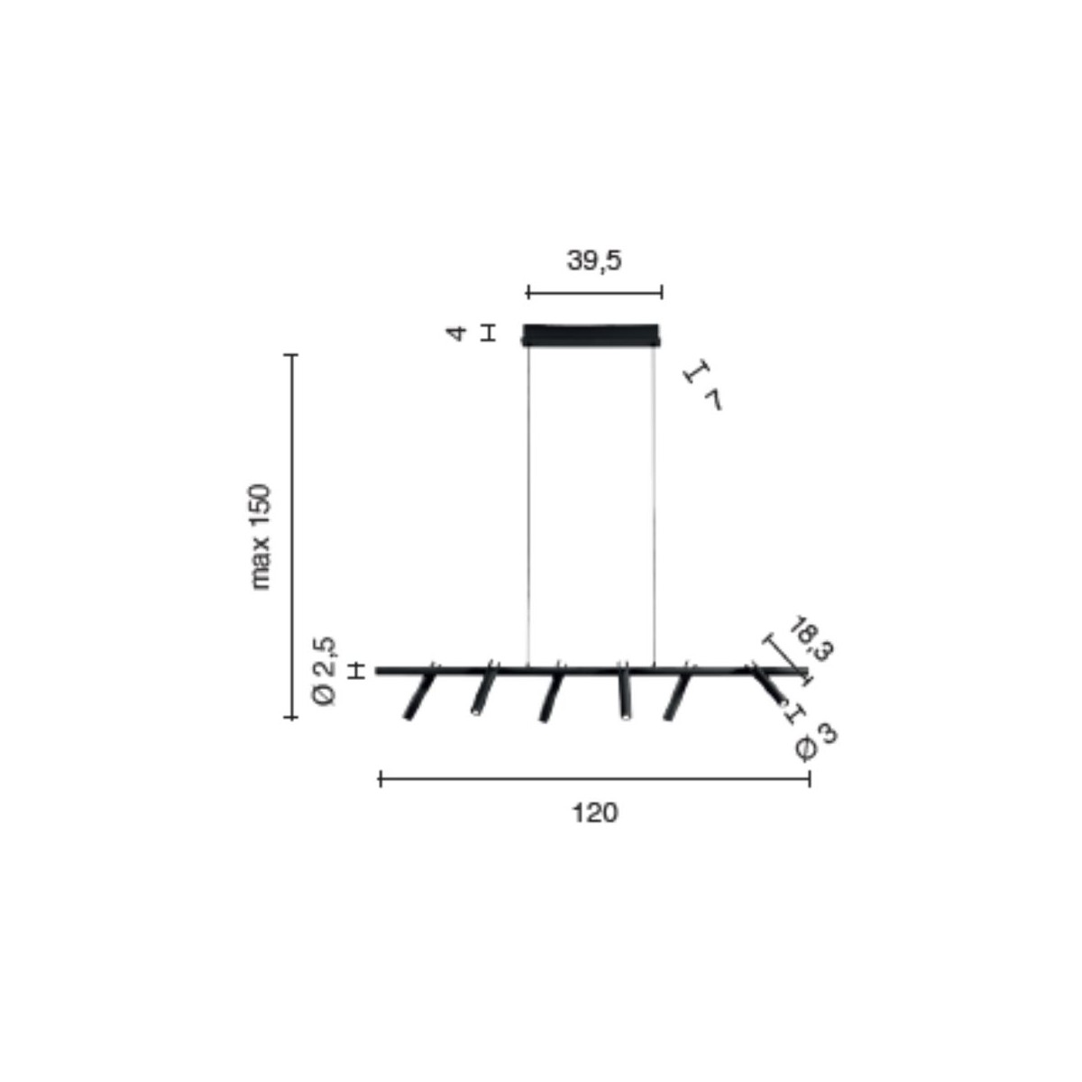 La versione con diametro 60 cm e altezza 150 cm è ideale per ambienti più raccolti o sopra un tavolo da pranzo. La versione da 120 cm di larghezza con altezza 150 cm è perfetta per ambienti ampi che richiedono una presenza scenica più importante.