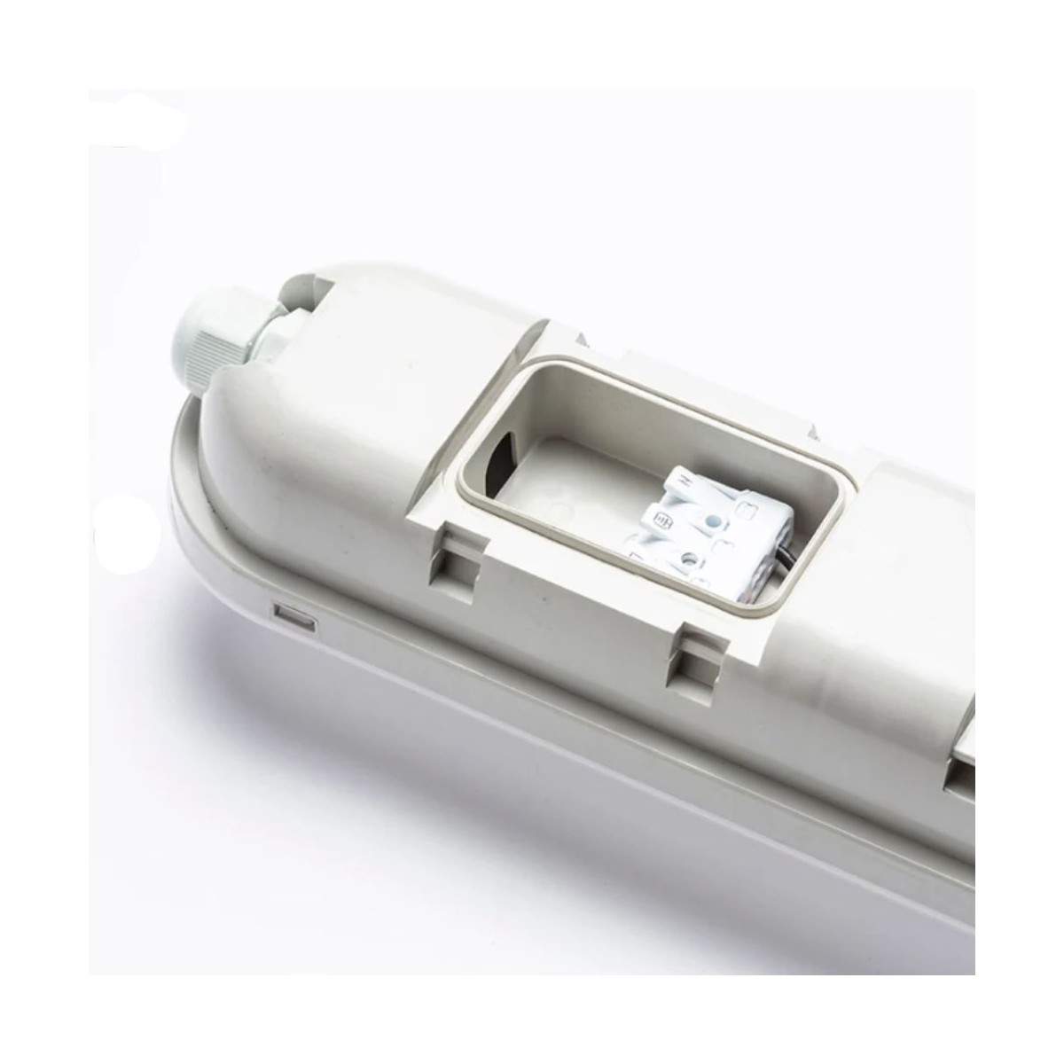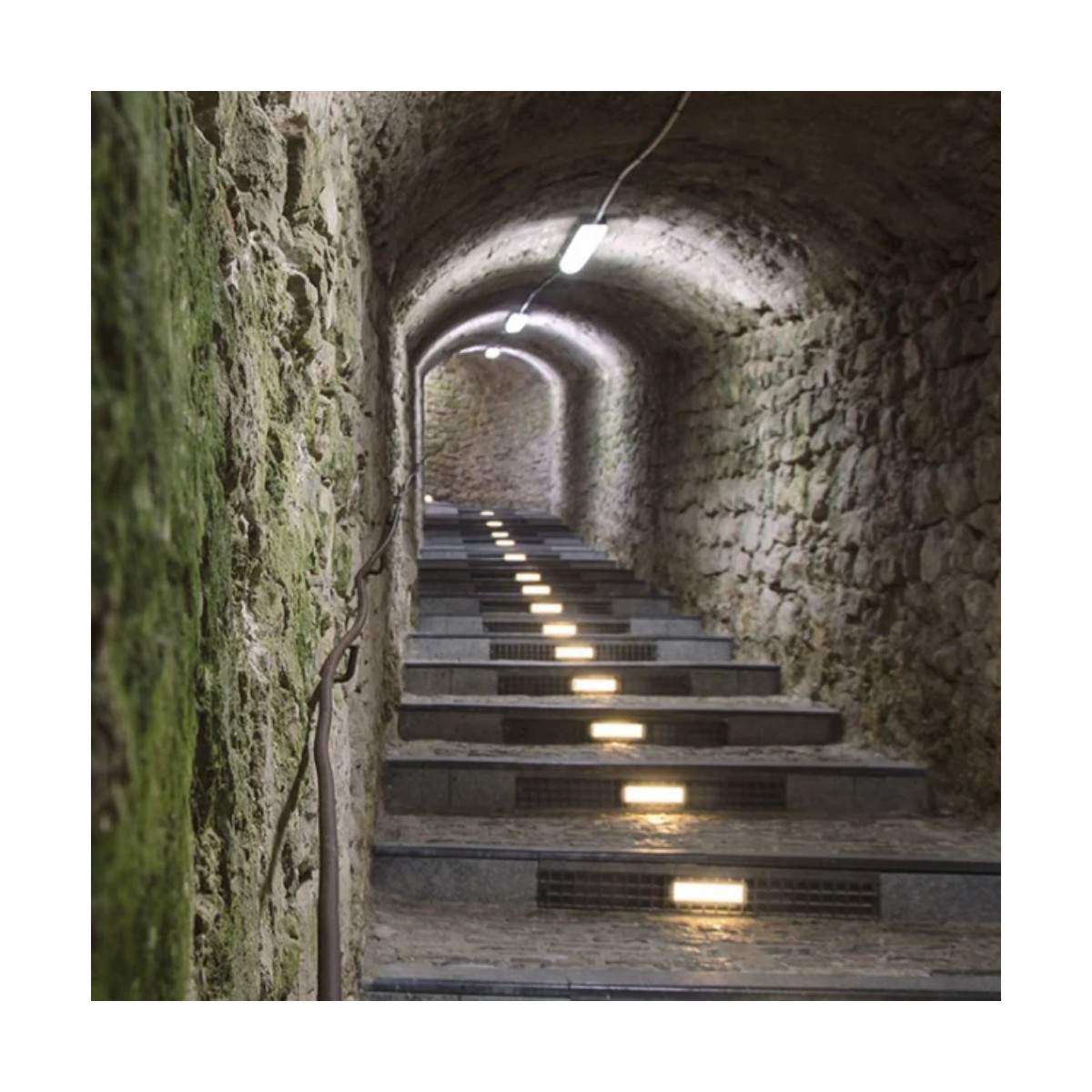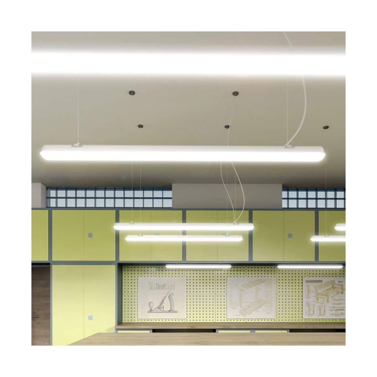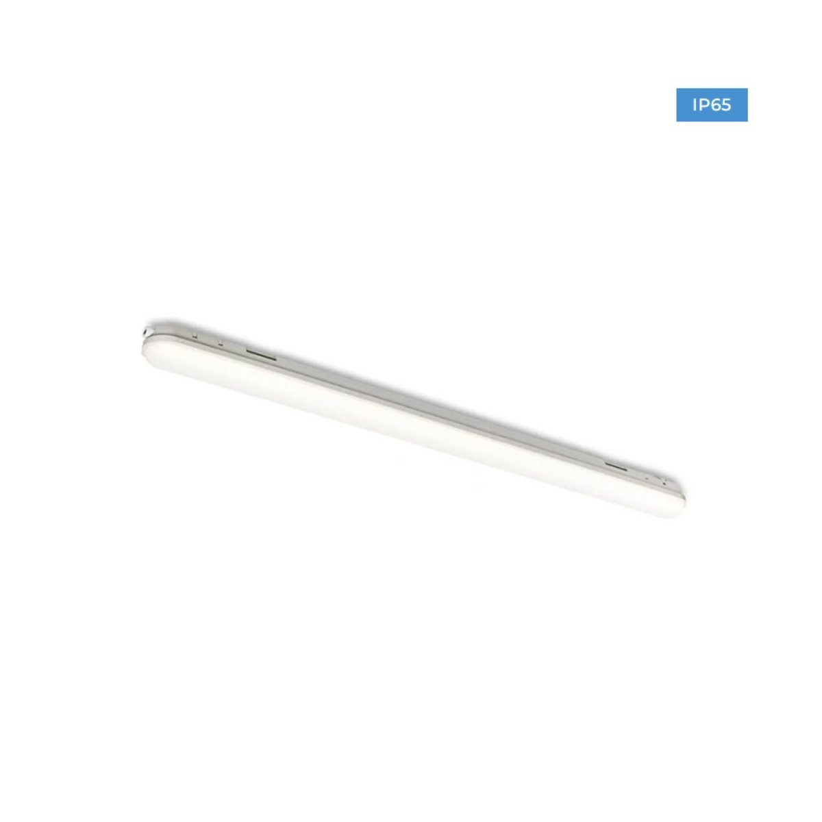 La struttura in grigio/acrilico opaco diffonde una luminosità chiara e pulita, mentre il grado di protezione IP65 la rende perfetta anche in contesti dove polvere e umidità sono presenti, garantendo affidabilità e durata nel tempo.