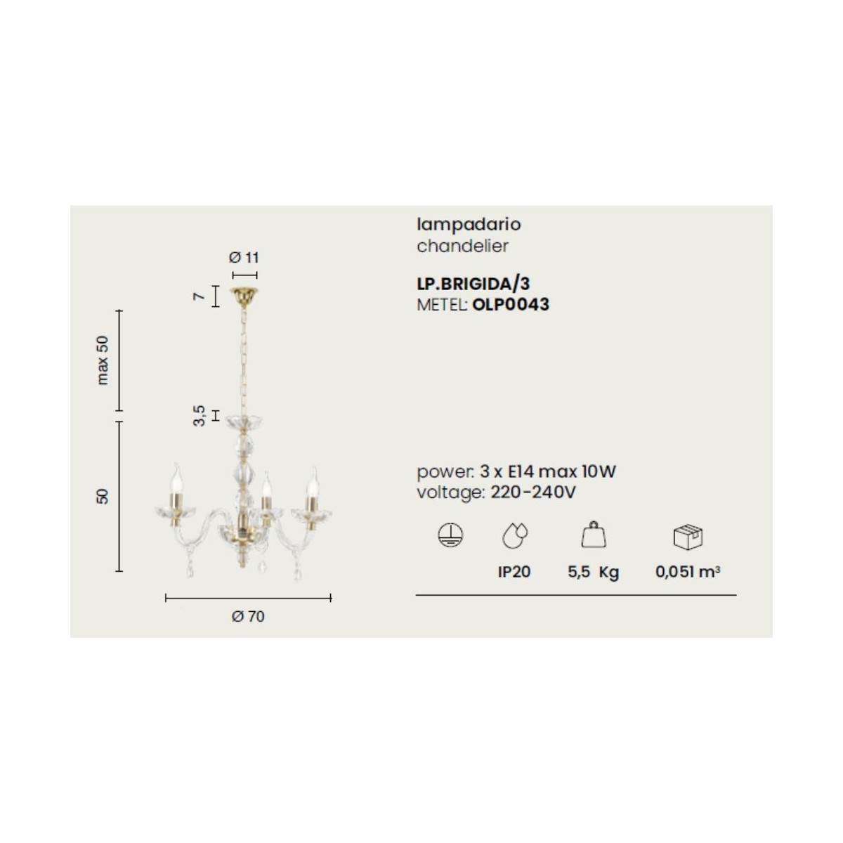 Disponibile in diverse configurazioni, BRIGIDA si adatta con eleganza sia a spazi importanti e scenografici sia a contesti più raccolti, diventando sempre il cuore luminoso della stanza. La catena regolabile permette di personalizzare l’altezza, garantendo la massima libertà di installazione per armonizzarsi perfettamente con il tuo spazio.
