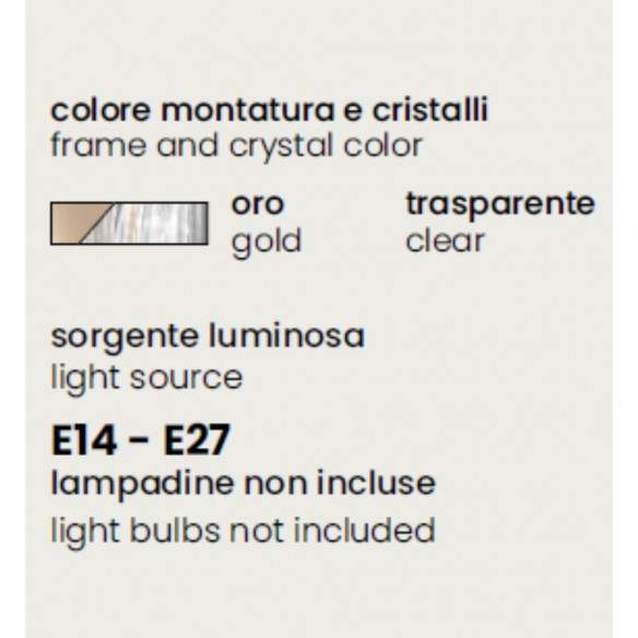 La finitura oro trasparente si sposa con la leggerezza dei paralumi avorio, creando un equilibrio ideale tra ricercatezza e sobrietà. Dotato di attacchi E14, è compatibile con le comuni lampadine LED o tradizionali, per un’illuminazione pratica oltre che scenica.