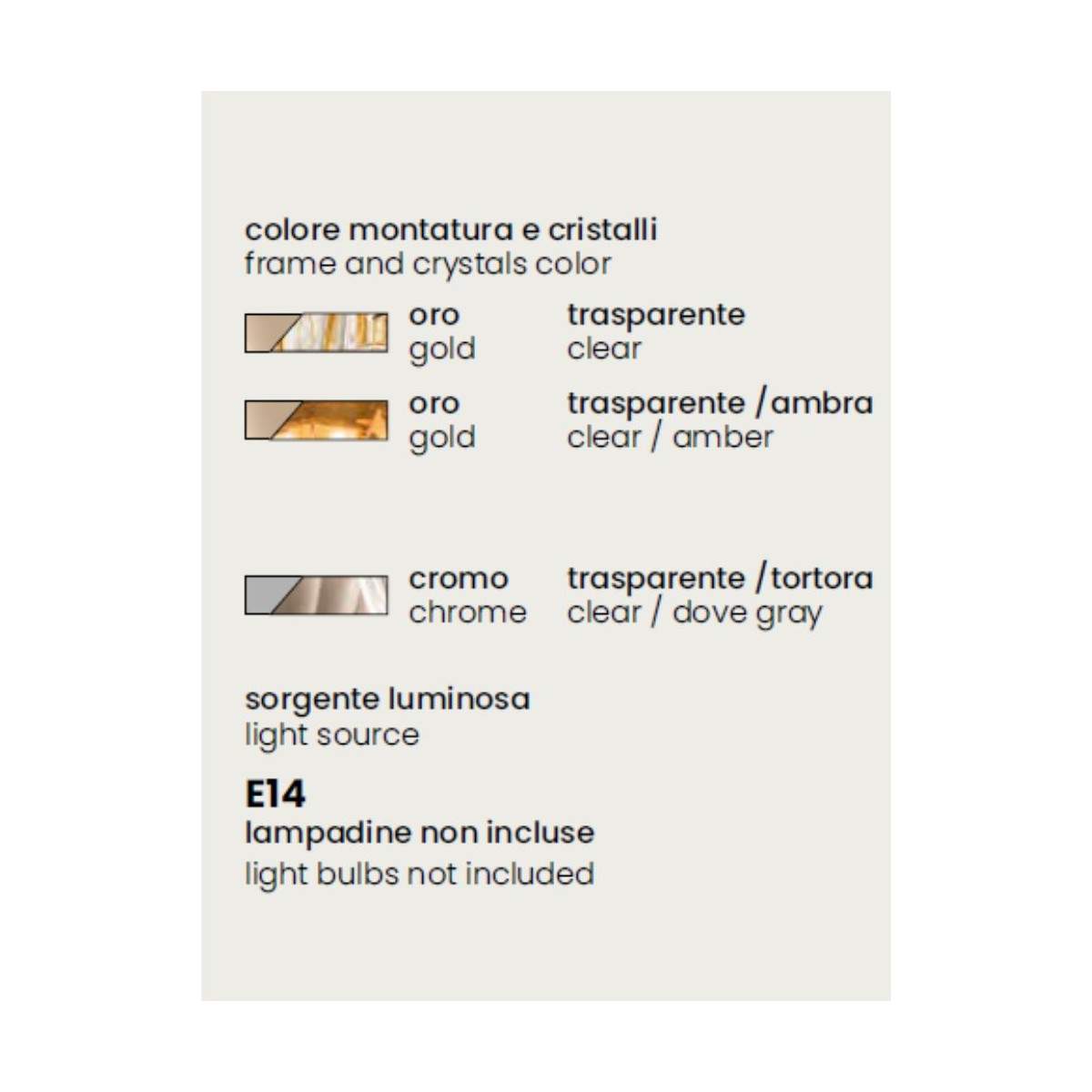 Il lampadario CECILIA è un vero gioiello d’arredo, capace di trasformare ogni ambiente in un salotto di classe. Realizzato in vetro e cristallo, con splendidi paralumi in tessuto plissé, questo lampadario si distingue per la sua bellezza senza tempo e l’effetto scenografico che sa regalare.